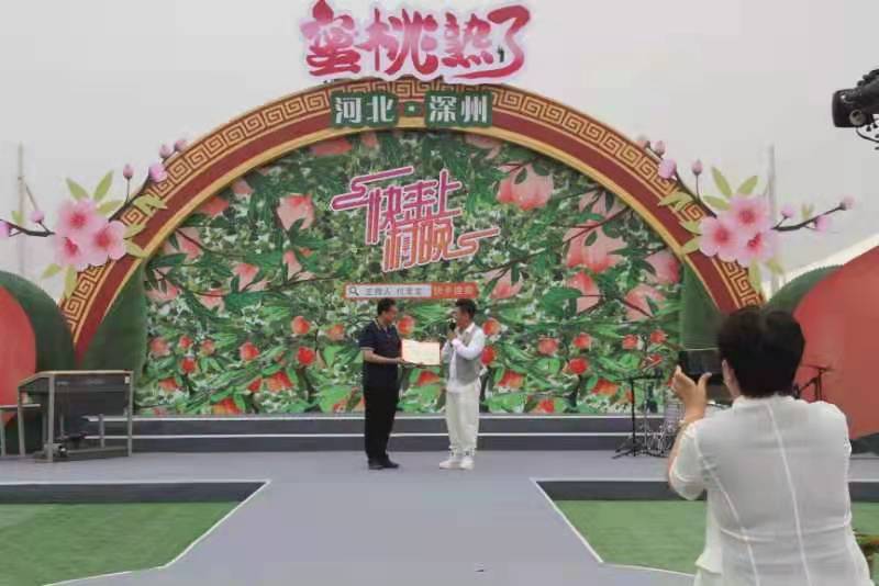與此同時,“蜜桃熟了”——快手大型直播活動在深州桃現代科技示范基地舉行,網紅主播通過表演豐富多彩的文藝節目,與網友互動交流,用多種方式為流淌著淳樸氣息的深州蜜桃打“call”。直播期間,深州市市長于波向主持人付玉龍頒發“深州蜜桃公益大使”榮譽證書,“桃王爭霸賽”的一、二等獎獲得者登臺與觀眾和網民互動,分享蜜桃種植經驗,提升了“深州蜜桃”知名度和美譽度。