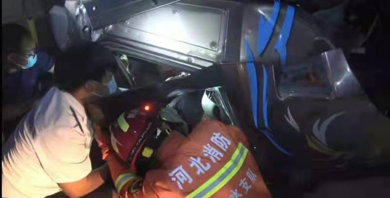 8月28日晚11時28分,衡水市消防救援支隊安平大隊接到報警稱,安平縣徐疃村村口紅綠燈西追尾發生事故,2人被困。安平縣為民街消防救援站立即調派12名指戰員與1輛搶險救援車、1輛城市主戰消防車緊急趕赴事故現場。
