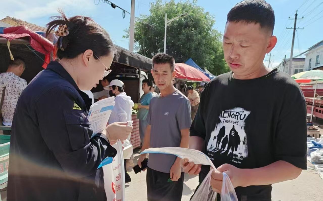 在校門口發放口罩、測體溫。深州市融媒體中心供圖