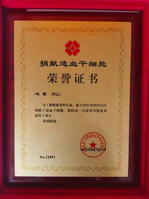馮雪說(shuō),希望她的舉動(dòng)能感染帶動(dòng)更多的人加入到中華骨髓庫(kù),成為一名捐“髓”志愿者,在茫茫人海中遇到配型成功的“有緣人”,用自己的熱血挽救他人的生命,為瀕臨絕望的家庭帶去希望和力量。