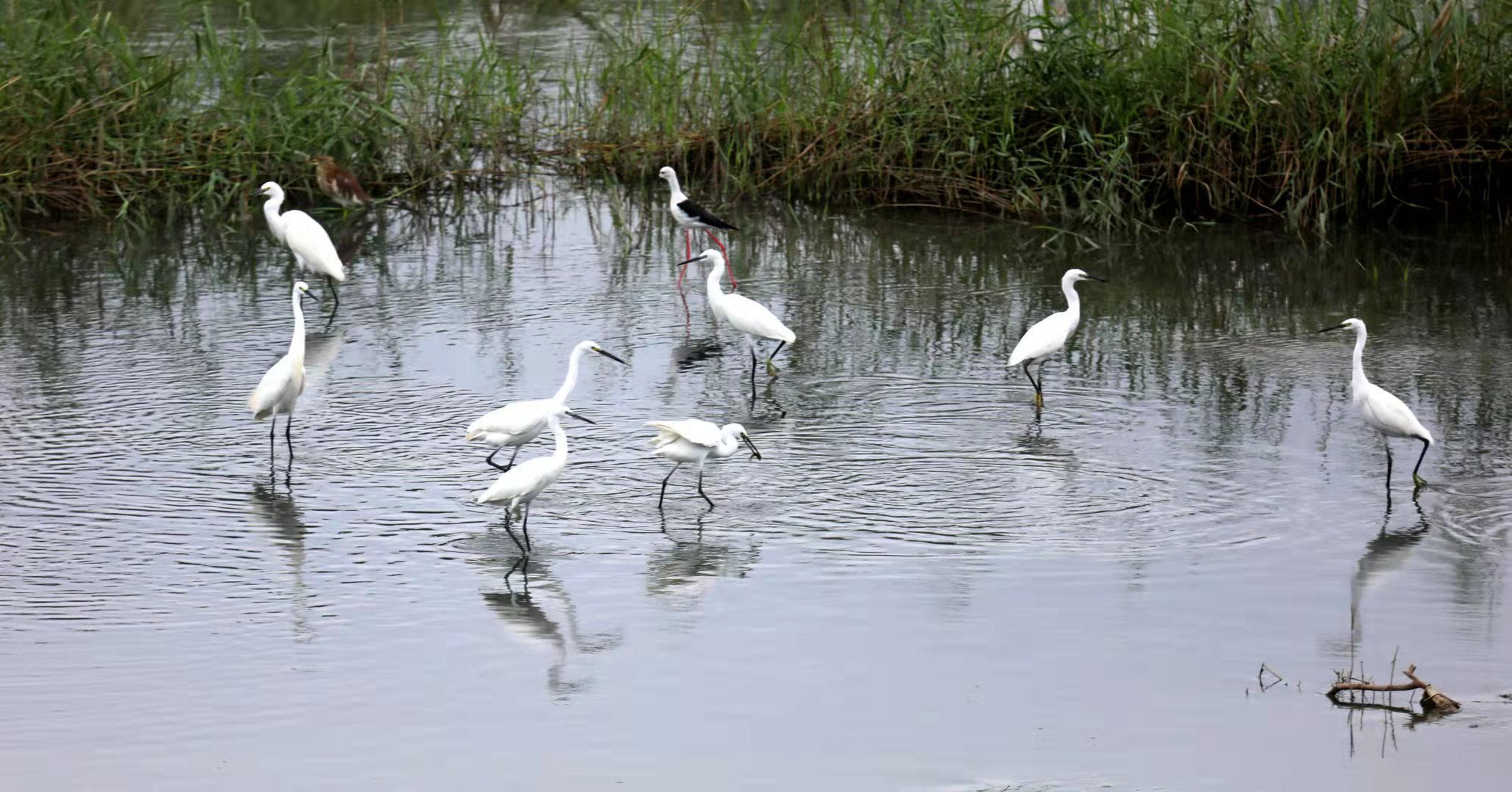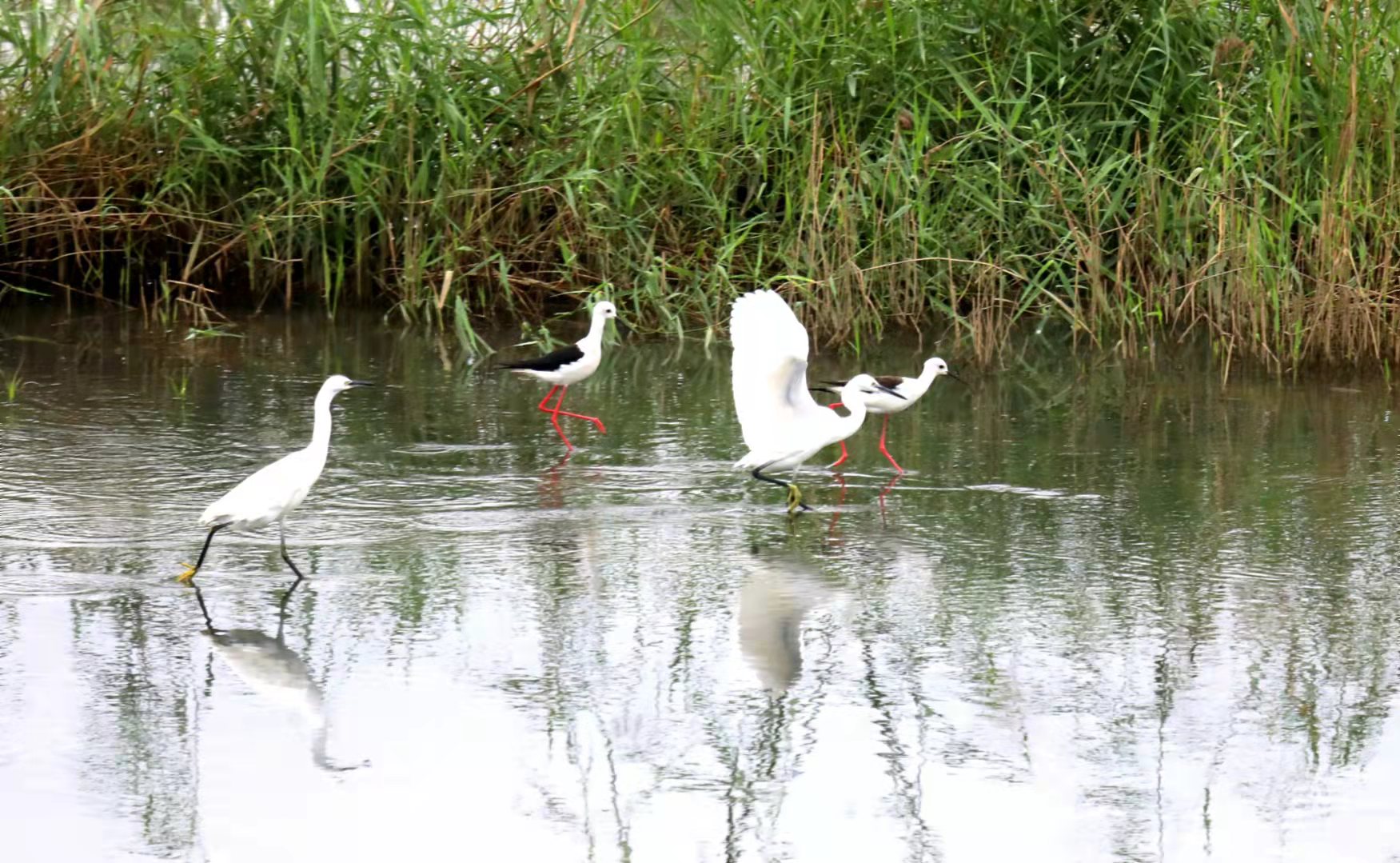 “滏陽河治理很見成效,你瞧!就連成群的白鷺都來給咱衡水美景‘點贊’了!”近日,衡水不少細心的市民發現,市區滏陽河大慶東路北段迎來了一群“新客”——白鷺、黑翅長腿鷸、斑嘴鴨、蒼鷺等鳥兒在此處棲息游玩,與滏陽河清清碧水構成一幅美妙的生態美景。