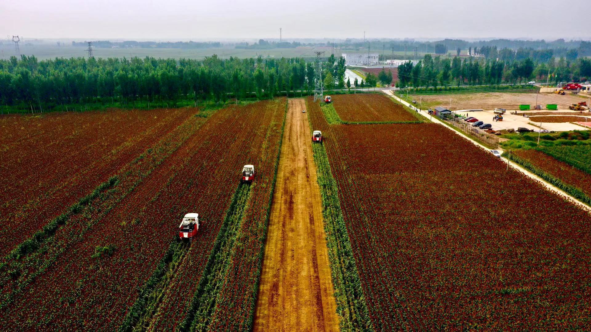 9月6日,在衡水市阜城縣崔家廟鎮劉棗胡村的地里,村民們正在熱火朝天地收割高粱。一輛輛聯合收割機在高粱地里穿梭著,紅彤彤的高粱映紅了農民的臉龐,豐收的喜悅彌漫在這片田野上。