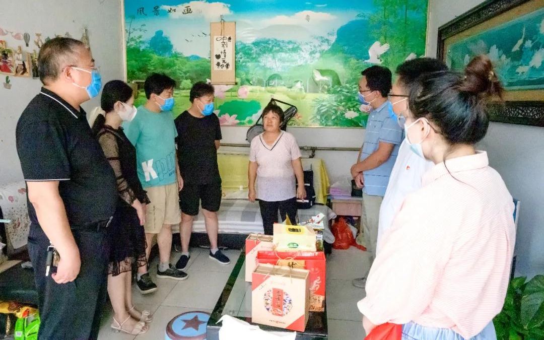 烈日當空,抗疫先鋒隊員個個汗流浹背,不顧天氣炎熱,分別深入到困難戶中,話家常、聊近況?!爸星锕濕R上就要到了,這是我們的一點小心意,提前祝您節日快樂。”“就醫方面有什么困難就告訴我們,要積極的面對生活。”“最近身體怎么樣,很快就天冷了,注意身體?!币痪渚渑牡膯柡蝽懺诙?;一份貼心的關懷,溫暖到群眾心里。