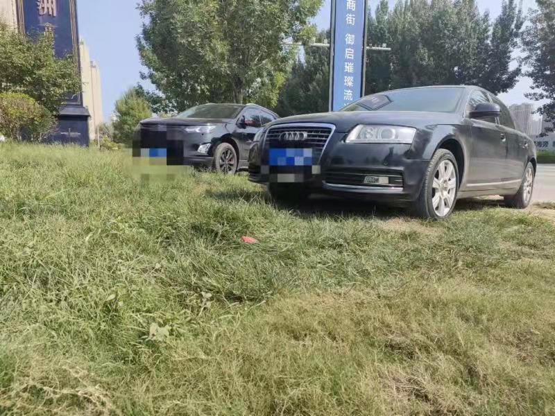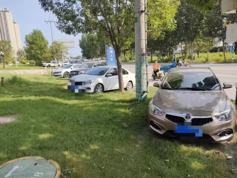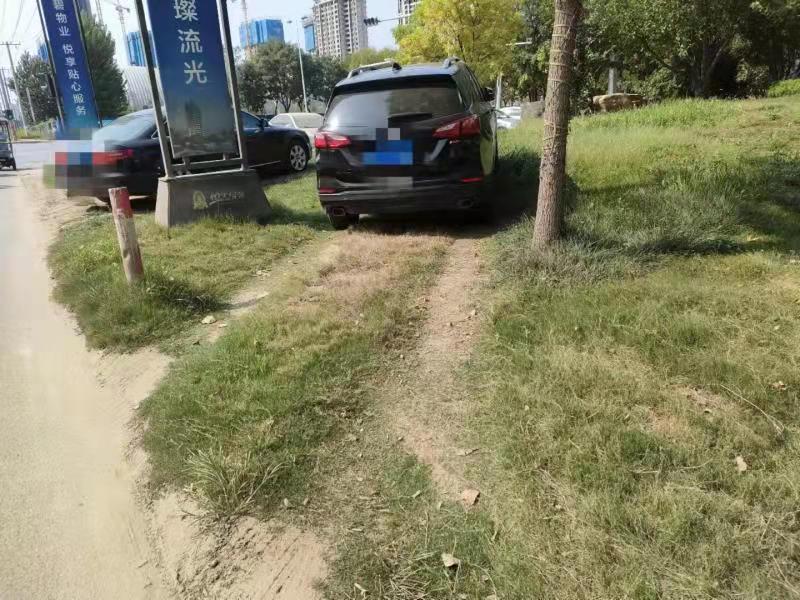 再往西走,記者發(fā)現(xiàn),在南外環(huán)與中華大街交叉口東側(cè)路北的綠化帶里,也停放了不少機(jī)動(dòng)車(chē),仔細(xì)數(shù)了數(shù),竟有58輛!這些機(jī)動(dòng)車(chē)橫七豎八停得很“任性”,有的半輛車(chē)軋?jiān)诓莸厣希械恼v開(kāi)進(jìn)草地內(nèi),把草地前方的灌木叢撞倒一片,草地上的車(chē)轍印清晰可見(jiàn)。由于長(zhǎng)期受輾軋,這里的草地也變得稀稀疏疏,甚至有的地方已經(jīng)黃土裸露。