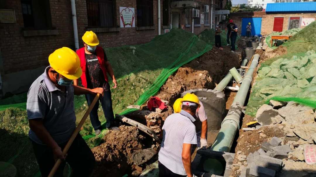 施工人員正在鋪設雨污處理管道。冀州區住建局供圖
