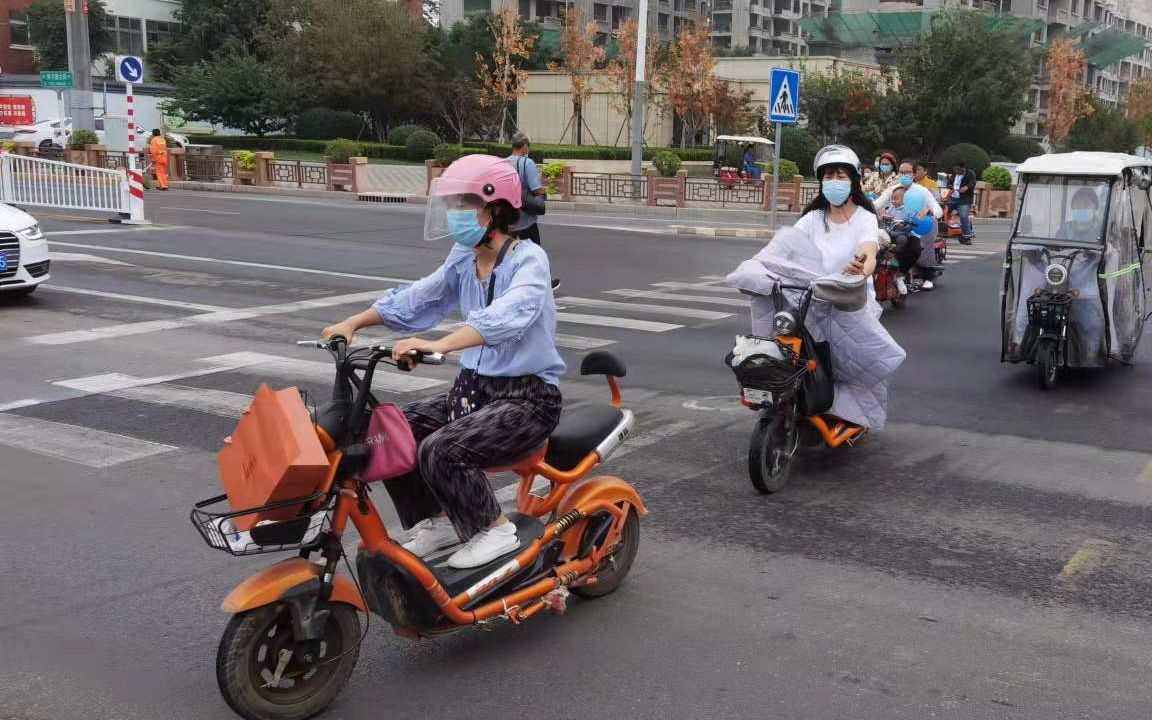 當日上午9時30分許,人民路與育才街交叉口附近,非機動車通行秩序井然。在電動車騎行隊伍中,佩戴頭盔者明顯增多,不少市民表示,早已經通過媒體報道,了解到了佩戴頭盔的重要性,自去年起,騎電動車出門就一直按規定戴頭盔,也慢慢養成了習慣。“若騎電動車發生交通事故,特別容易跌傷或者頭部遭受撞擊,這時候,戴上頭盔至少能對抗一下沖擊力,有效保護頭部。”市民王女士說,她不僅自己依規戴頭盔,也經常勸導家人、朋友戴頭盔騎行電動車。