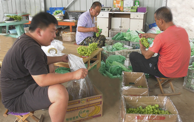 工人們對葡萄進行分揀、包裝。趙艷 攝