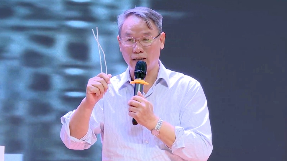 劉冰手持導(dǎo)線為同學(xué)們講解航天電路知識(shí)。袁林 攝