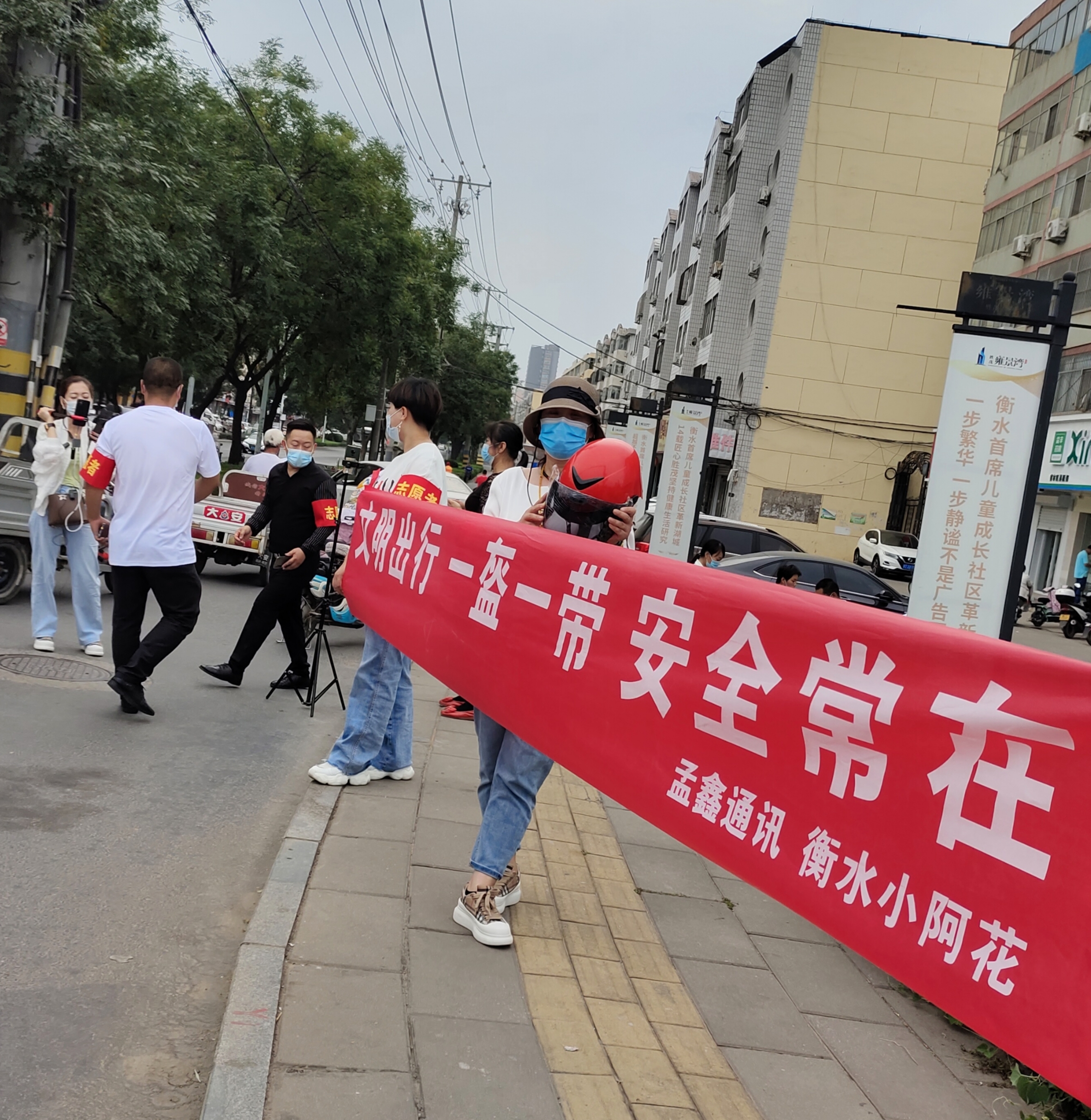 9月17日,衡水孟鑫通訊組織熱心志愿者衡水小阿花直播團隊一同在市區和平東路與新橋北街舉行“文明出行 一盔一帶安全常在”公益活動,以提升廣大騎行者的安全意識。