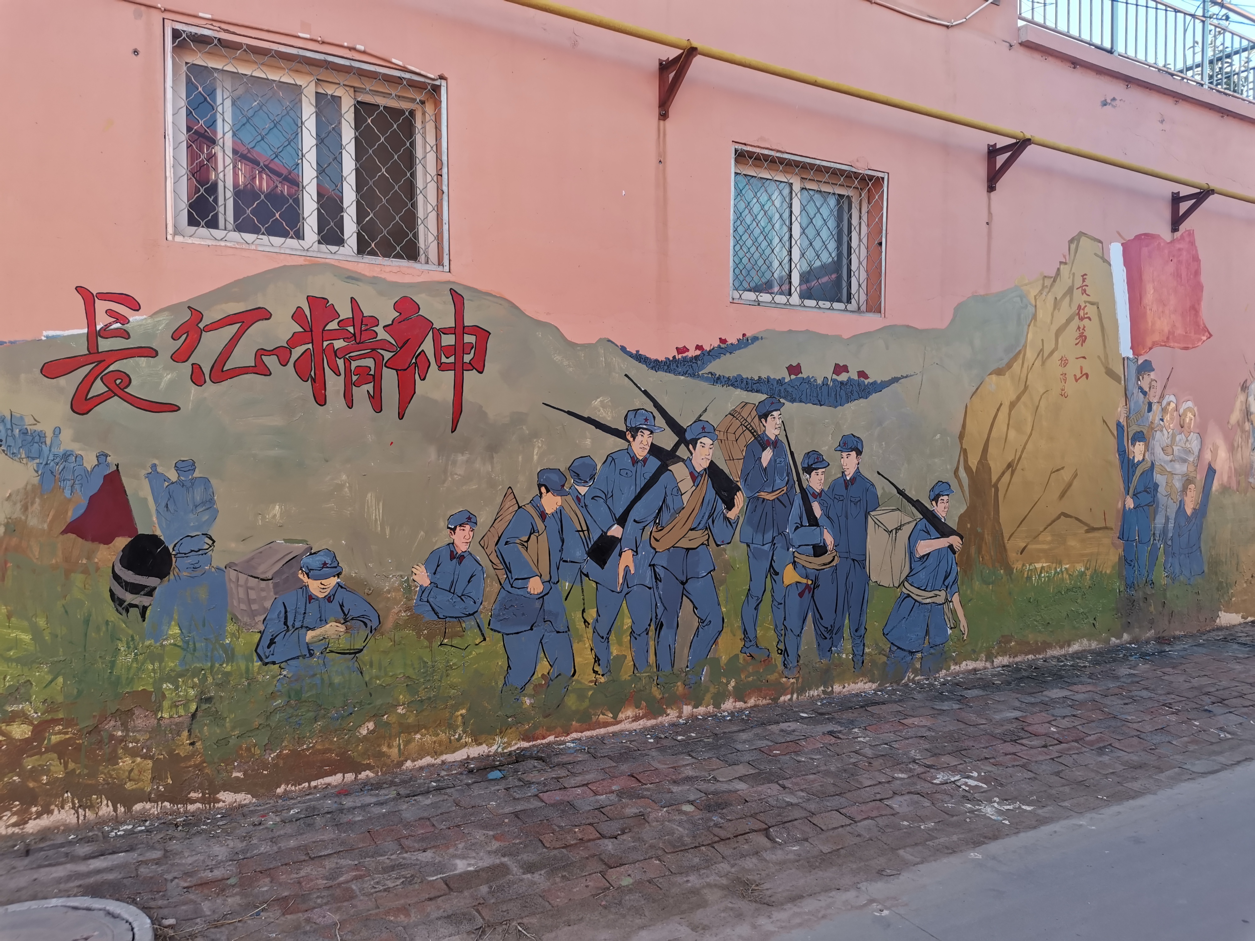 在該鎮肖張村,河北師范大學美術與設計學院首先利用當地的紅色資源開展了黨史學習教育。之后學生們前往墻繪地點進行實地考察,結合墻體具體情況與肖張村的整體規劃,以黨的發展歷程為主線,選取紅船精神、井岡山精神、長征精神、西柏坡精神、延安精神、兩彈一星精神和改革開放精神等7個具體精神內涵進行墻繪創作,一墻一精神,一墻一風景,將黨史故事融入墻繪藝術,吸引了廣大村民駐足觀看,為棗強美麗鄉村建設增添了新的光彩。