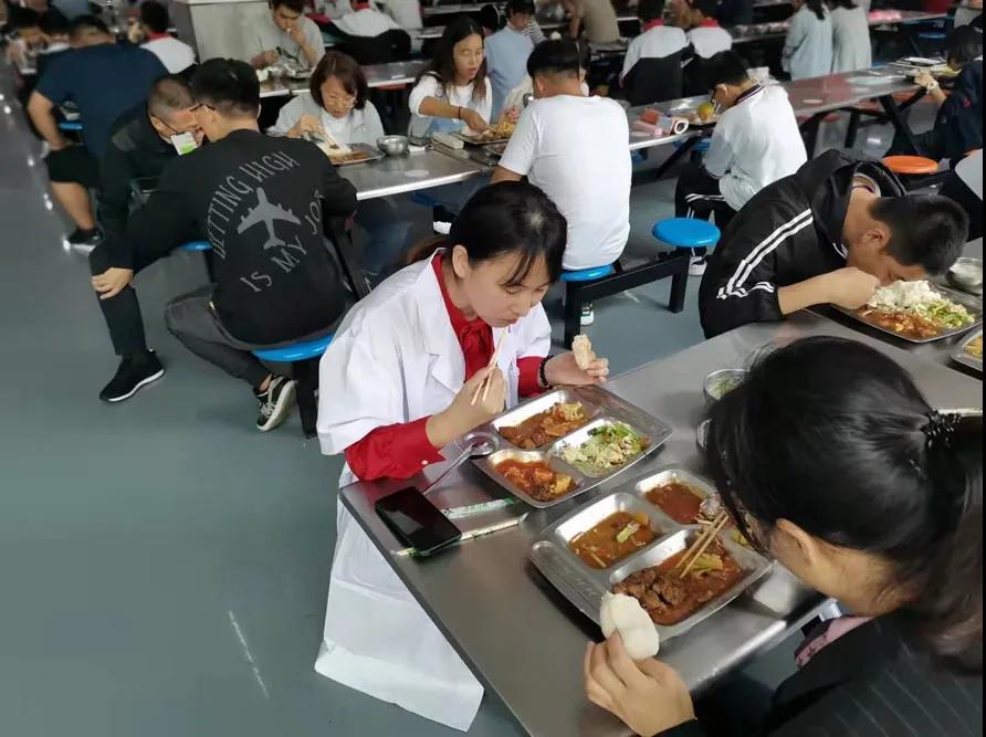 在測溫、消毒后,家長們走進(jìn)餐廳,走進(jìn)后廚,近距離地觀摩了食品加工操作流程,參觀了消殺間、配餐間、切配區(qū)、烹飪區(qū),認(rèn)真了解了餐廳整體環(huán)境、膳食制度、飲食管理、進(jìn)貨渠道、食品存放及衛(wèi)生消毒等情況。隨后,來訪家長與學(xué)生們一同就餐,親口品嘗了學(xué)校的飯菜。