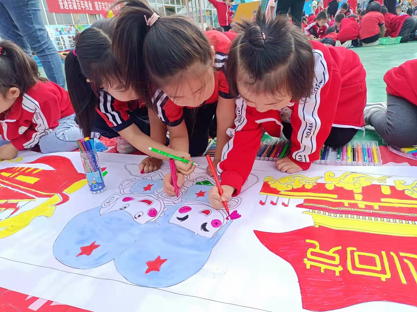 孩子們用畫筆表達對祖國的祝福。栗紅 攝