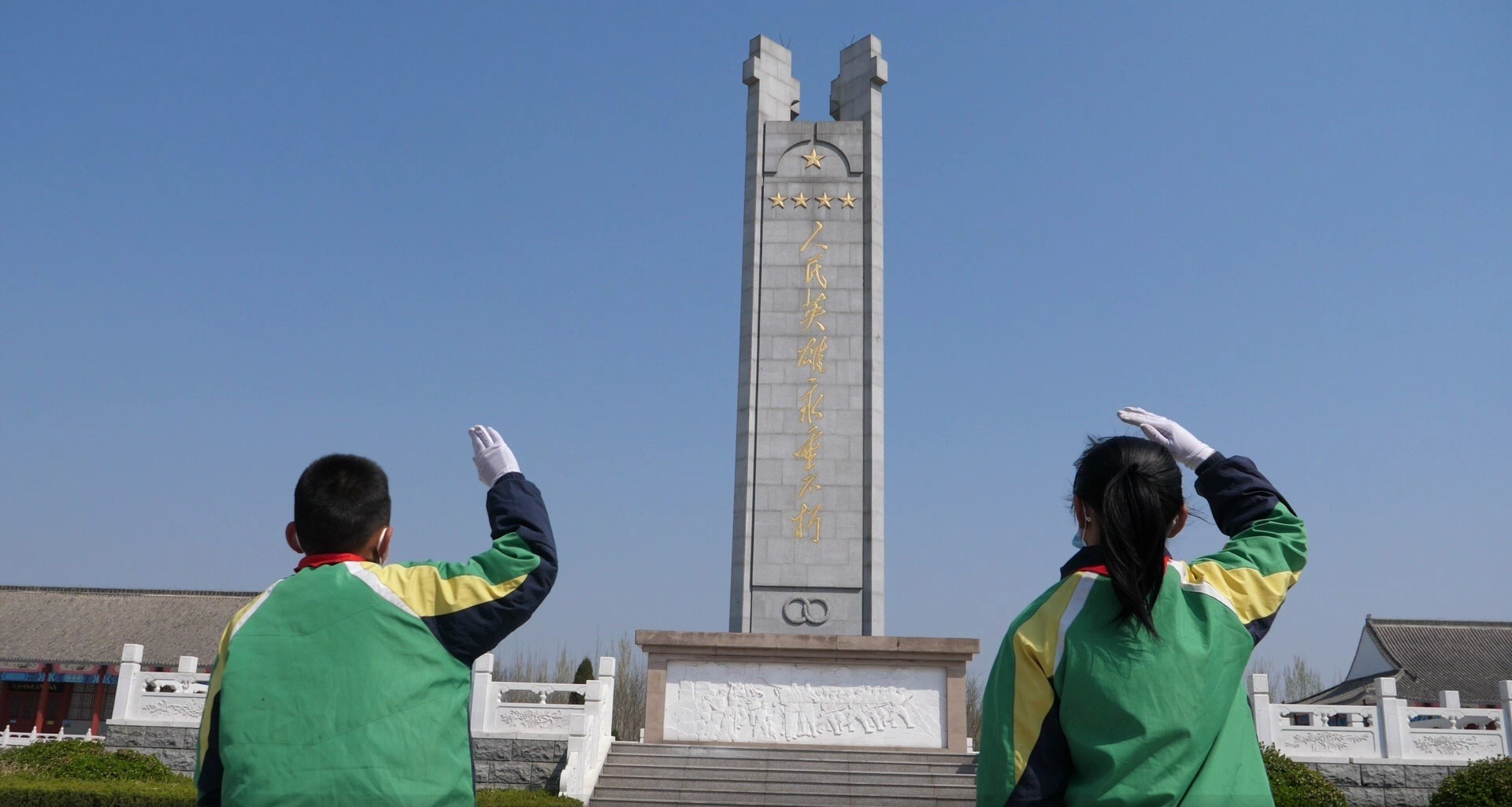 阜城縣黨員代表在紀念碑前重溫紅色歷史。焦佳慧 攝