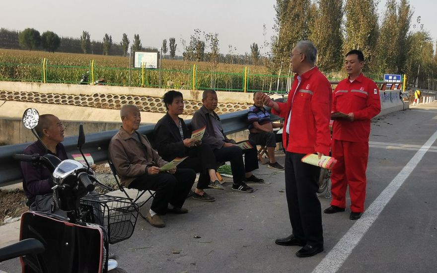9月29日,該公司戚作林書(shū)記帶隊(duì),按照計(jì)劃進(jìn)入到鄉(xiāng)村、集市、路邊等人員較多的地區(qū),進(jìn)行安全宣傳活動(dòng)。宣傳人員在冀州區(qū)范莊村利用集市上人多的優(yōu)勢(shì),在集市上拉起橫幅,布置好安全宣傳點(diǎn),向群眾宣傳管道安全保護(hù)知識(shí)。戚書(shū)記通過(guò)與村民交流得知,管道周邊有挖掘設(shè)備的常駐施工隊(duì)有十幾家,于是戚書(shū)記安排工作人員進(jìn)行了解,對(duì)這十幾家施工隊(duì)逐一上門(mén)進(jìn)行安全宣傳,將安全宣傳知識(shí)送達(dá)到周邊每個(gè)施工隊(duì)。