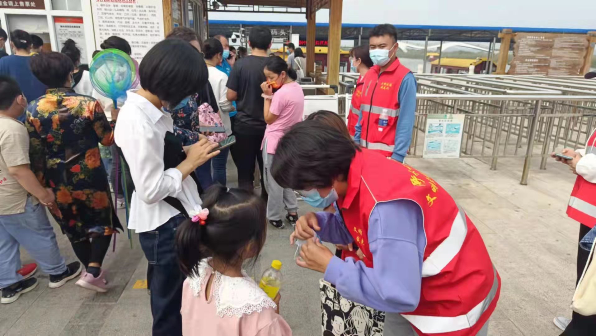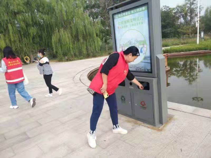 國慶假期期間,衡水湖景區游人增多,大家紛紛走出家門,來到景區暢游湖光秋色。為倡導綠色、低碳的生活理念,營造人人皆知、廣泛參與的創城氛圍,進一步提升全社會文明旅游的意識,衡水好人網冀州站志愿者們身穿紅馬甲,手拿垃圾袋,積極投入到撿拾垃圾的行動中。他們一邊忙著撿塑料袋、飲料瓶等垃圾,一邊向游人宣傳環保理念,呼吁每個人貢獻自己的一份力量,助力文明城市創建。