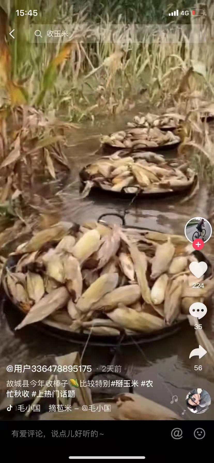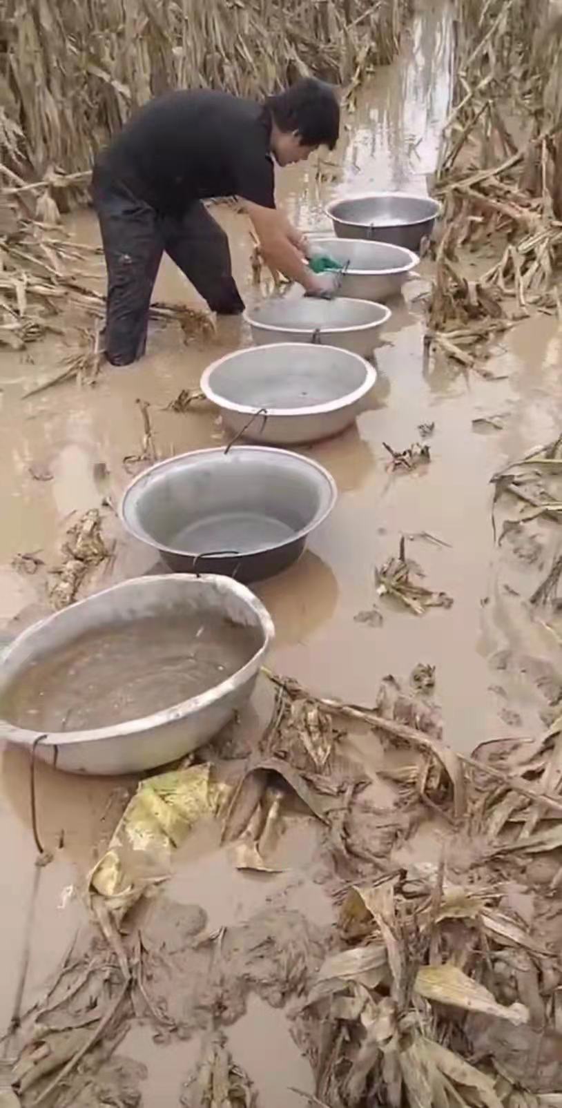 相信不少市民近期在一些短視頻APP中都刷到過我市的農民朋友穿著雨鞋在地里人工掰玉米,靠人力運到地頭的視頻。尤其是地塊積水嚴重的故城縣,有村民將玉米收到大盆中,用繩索連接,用拖拉機拉回地頭。在饒陽店鎮,還有村民無奈地將玉米收在大鐵鍋里,從過膝的積水中靠人力拉出來。