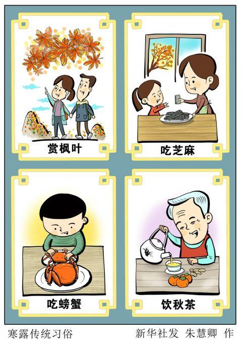 “蕭疏桐葉上,月白露初團。”8日9時38分將迎來“寒露”。“露氣寒冷,將凝結(jié)也”,此時節(jié),荷敗蟬噤,桐殘葉黃,千里霜鋪,鴻雁南歸,呈現(xiàn)出一派深秋景象。寒露節(jié)氣也是天氣轉(zhuǎn)涼的象征,標志著天氣由涼爽向寒冷過渡。“寒露不露腳”,進入寒露后要特別注意保暖,尤其是腳部。天冷了,記得添衣哦!