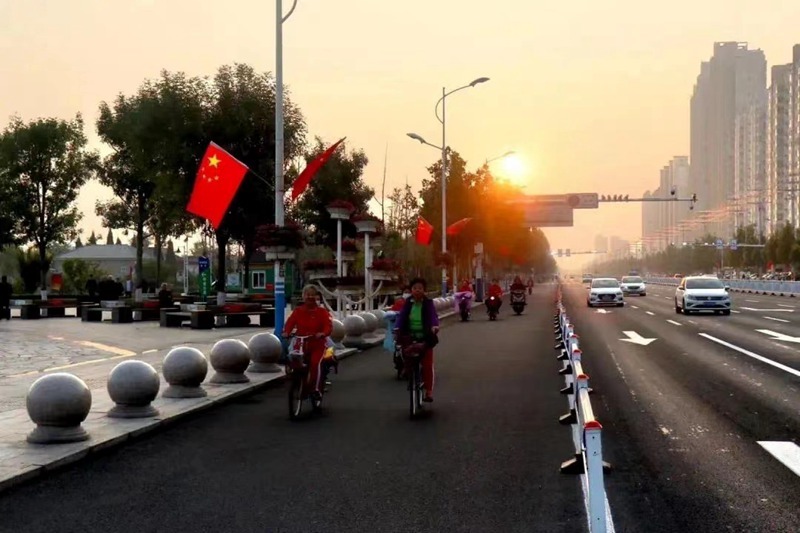 2021年10月1日早晨,冀州城區街景。冀州區融媒體中心供圖