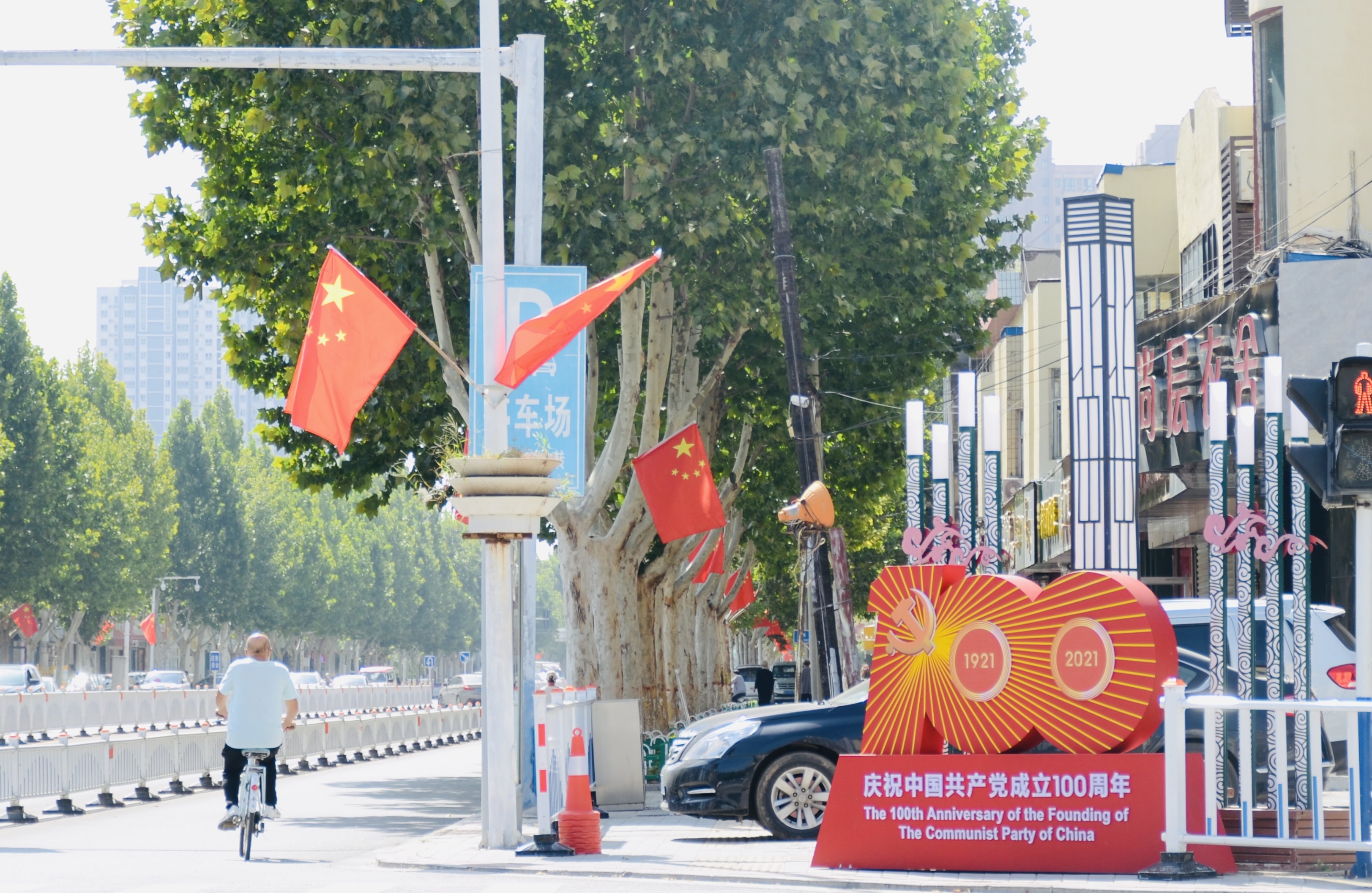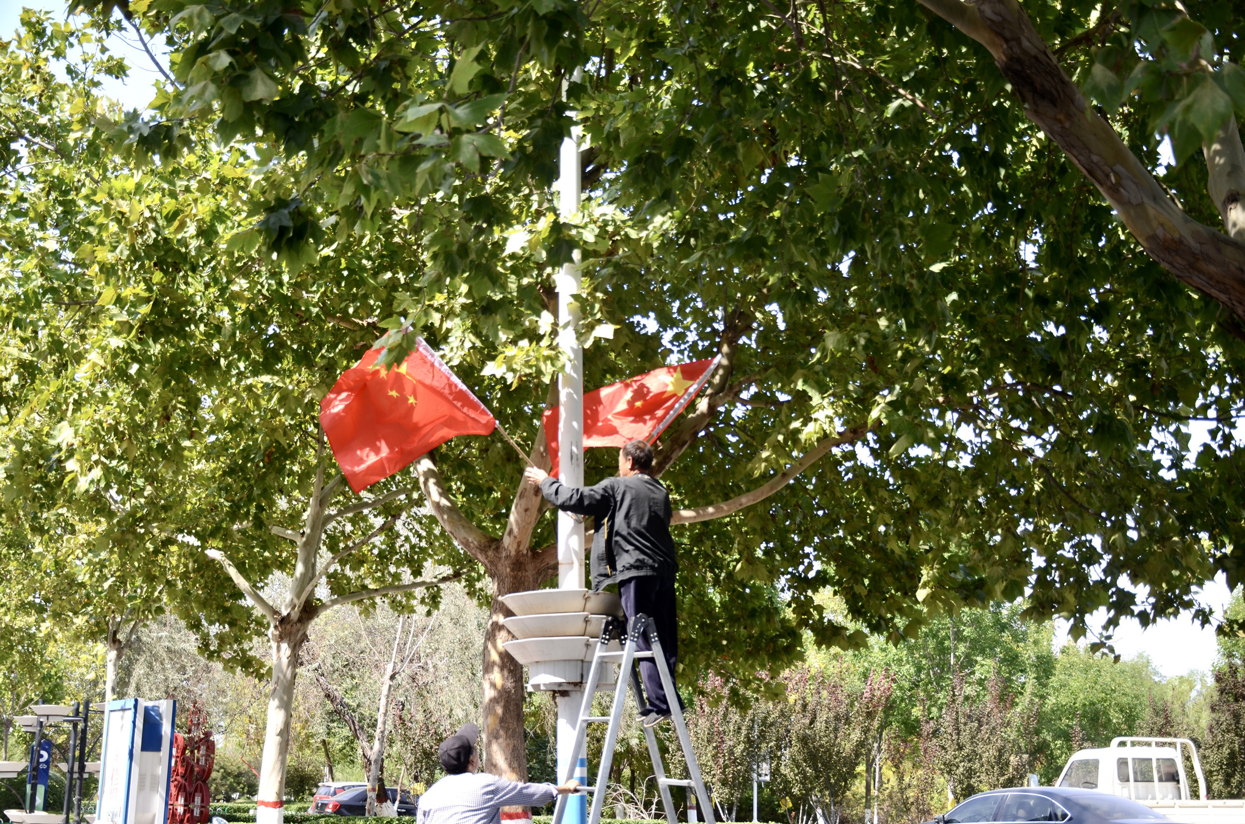 懸掛國旗,扮靚冀州。賈瑞潔 攝