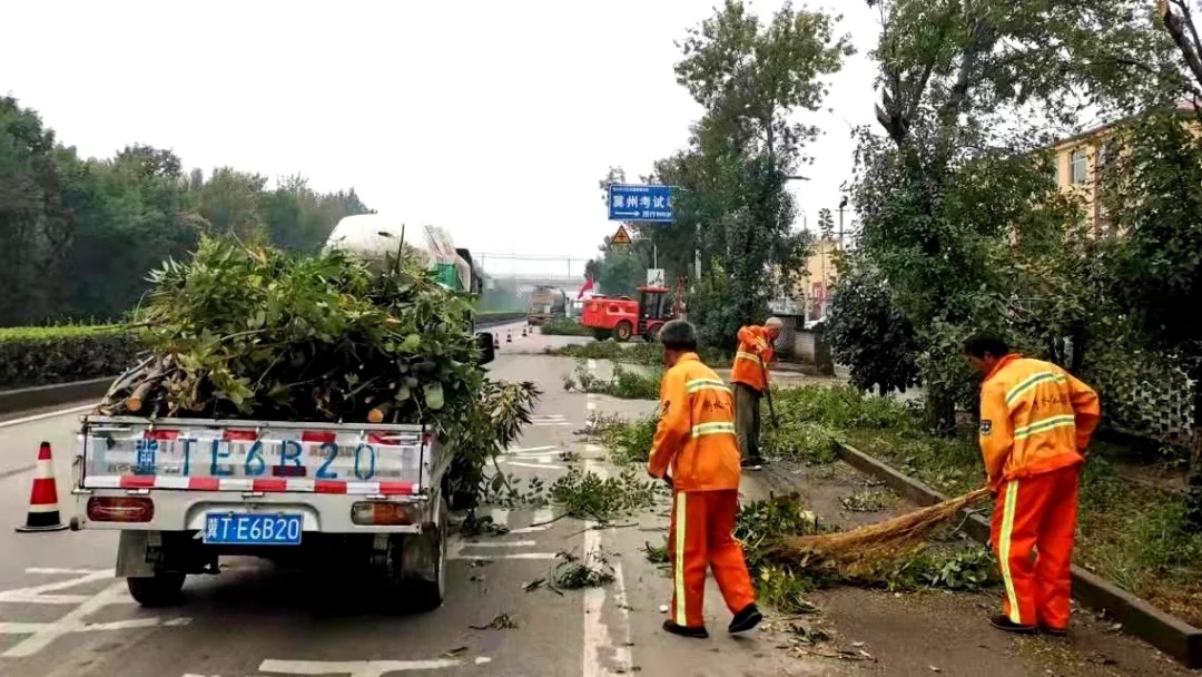 環(huán)衛(wèi)工人清掃修剪的枝葉。冀州區(qū)交通運(yùn)輸局供圖
