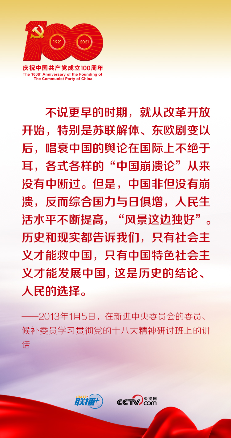 “中國特色社會主義是黨和人民歷經千辛萬苦、付出巨大代價取得的根本成就,是實現中華民族偉大復興的正確道路。”