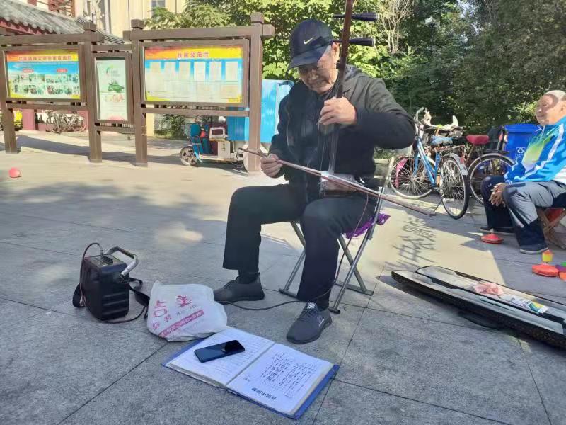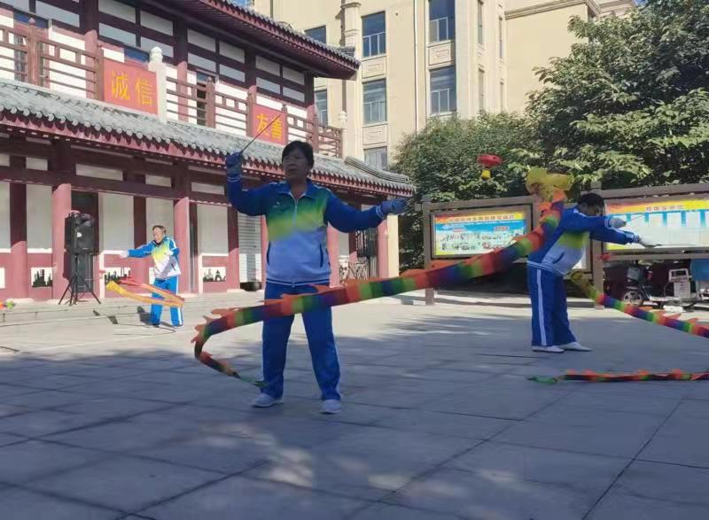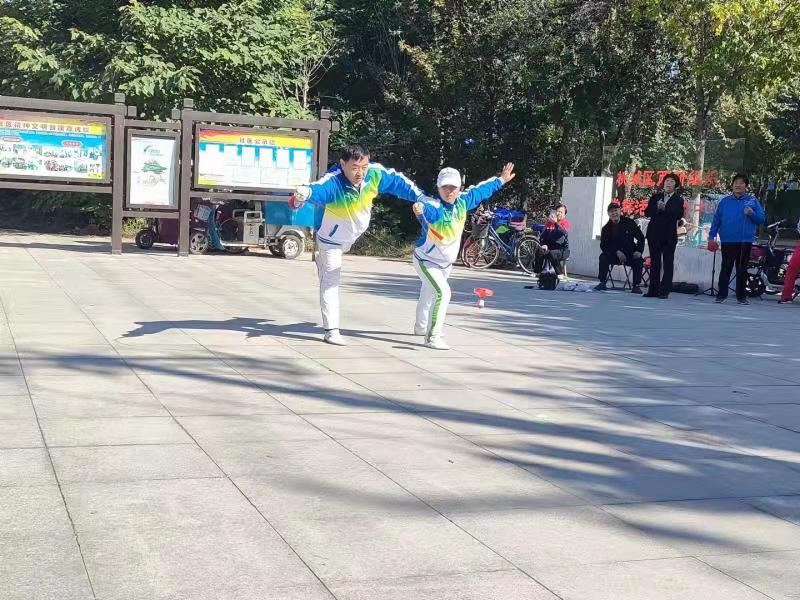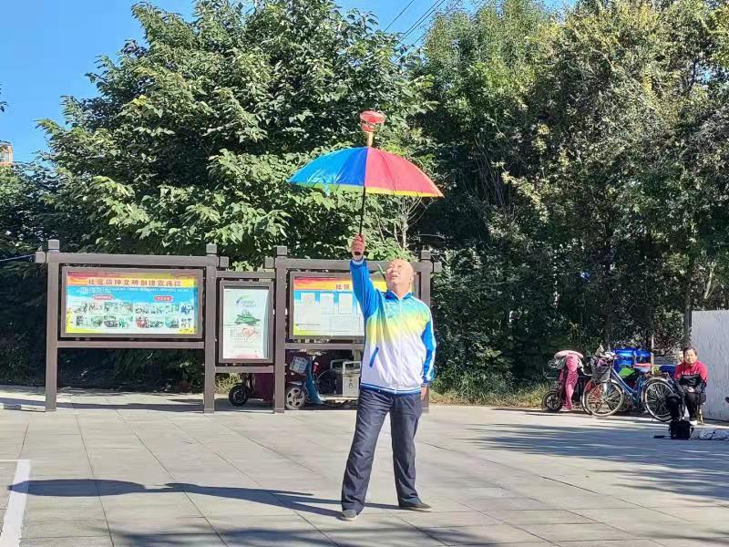 上午9時(shí),文藝演出在抖空竹表演中拉開帷幕。舞龍、雙人舞、大鵬展翅、水上漂……多形式的空竹節(jié)目,讓人目不暇接。20多名抖空竹愛好者,熟練地操縱著手里的空竹,時(shí)而上下飛舞,時(shí)而左右旋轉(zhuǎn),時(shí)而舉過頭頂,伴隨著“嗡嗡”的鳴響聲,空竹在空中劃出一道道優(yōu)美的曲線,吸引著路過的市民駐足觀看,不少觀眾紛紛拿出手機(jī),記錄下這精彩的一幕。隨后,歌曲演唱《咱老百姓》《共筑中國夢》《雙腳踏上幸福路》、太極拳表演、二胡演奏等節(jié)目輪番上演,豐富多彩,老人們看得格外開心。