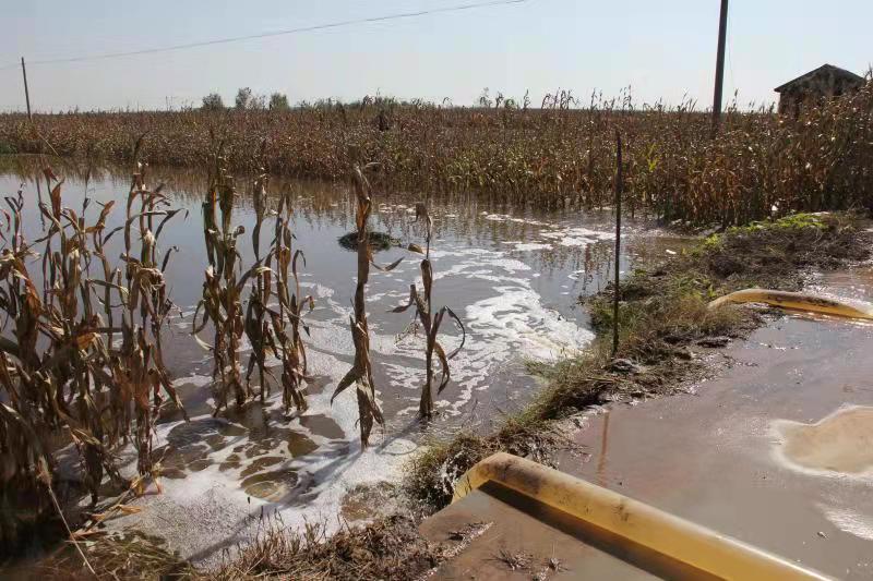 “我們已經(jīng)干了三天三夜了,估計再有一天積水就抽完了。”村民說道。記者在現(xiàn)場看到,枯黃的玉米稈在渾濁的泥水里挺立著,上面掛滿黃燦燦的玉米。為了排水,村民在玉米地靠近公路一側(cè)挖出了一米多寬的排水溝,積水順著排水溝匯聚到一起,再用水泵抽到幾十米遠的一處河道內(nèi)。“我們村一共2300多畝地,因為地勢低,幾乎所有地塊都被水淹了,最深的地塊積水有30多厘米深。”一位村民說道。