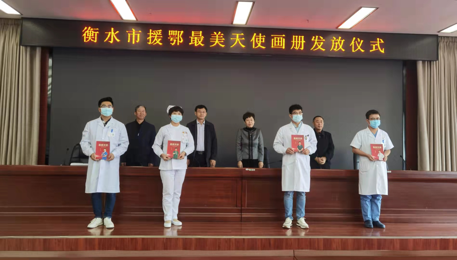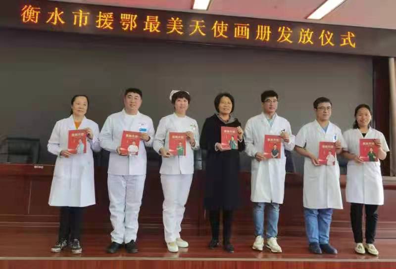 當(dāng)日上午,《最美天使》畫冊(cè)發(fā)放儀式在市人民醫(yī)院會(huì)議室舉行,市文聯(lián)、市攝影家協(xié)會(huì)、市人民醫(yī)院的部分領(lǐng)導(dǎo),以及童莉、吳建朝、張宏亮等10余位支援湖北醫(yī)療隊(duì)隊(duì)員代表參加。2020年春節(jié),新冠肺炎疫情防控阻擊戰(zhàn)打響,按照國家、省、市安排部署,衡水自1月26日起,先后派出5批醫(yī)護(hù)人員共68人,分別奔赴武漢市第七醫(yī)院、金銀潭醫(yī)院、江岸方艙醫(yī)院、武昌方艙醫(yī)院以及武漢大學(xué)中南醫(yī)院、雷神山醫(yī)院,開展醫(yī)療救治工作。在武漢援助期間,他們用精湛的醫(yī)術(shù)、高尚的醫(yī)德仁心,獲得了患者和武漢醫(yī)護(hù)的贊譽(yù),圓滿完成了支援武漢的任務(wù),展示了衡水醫(yī)護(hù)人員的良好風(fēng)貌。