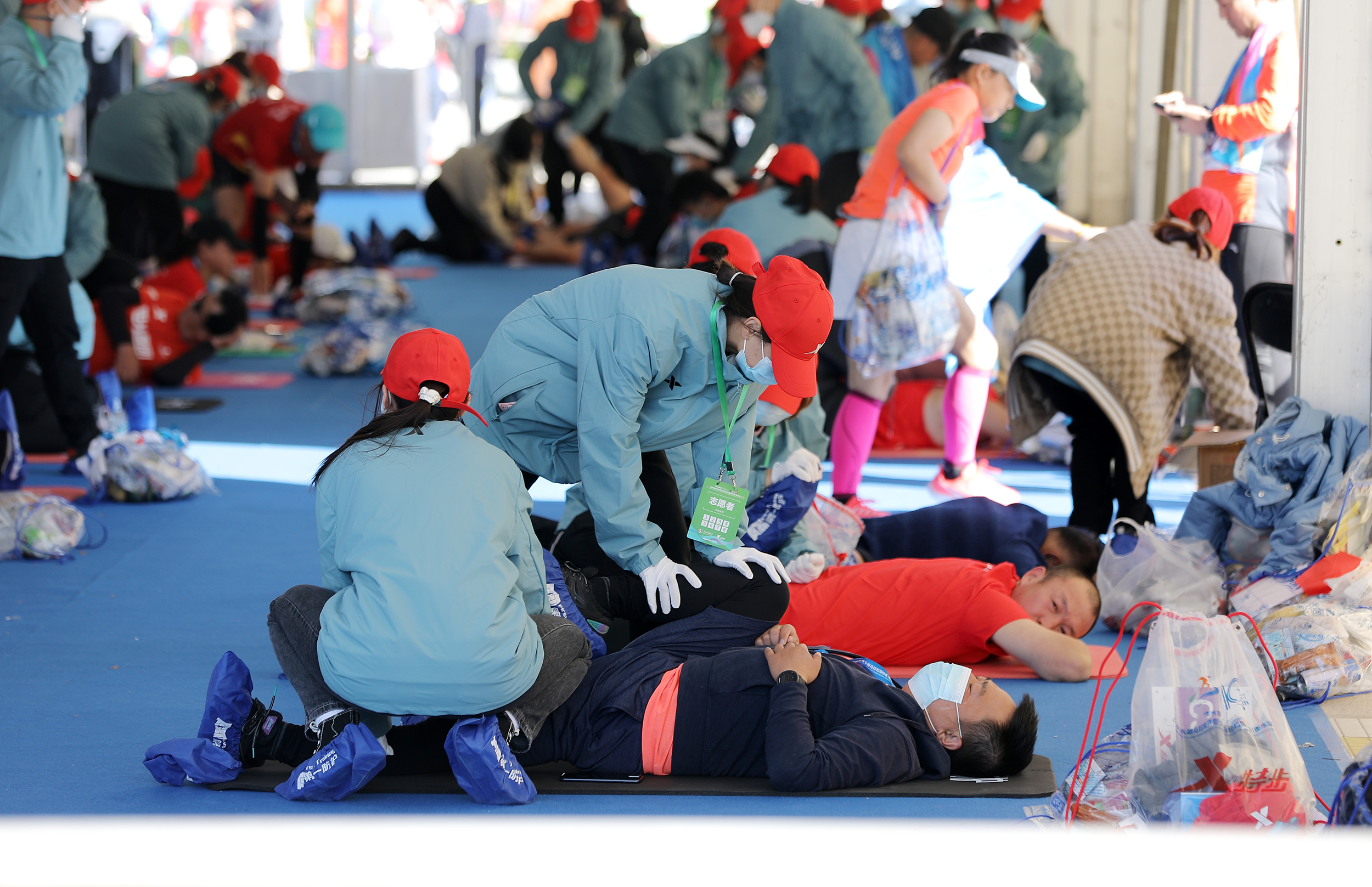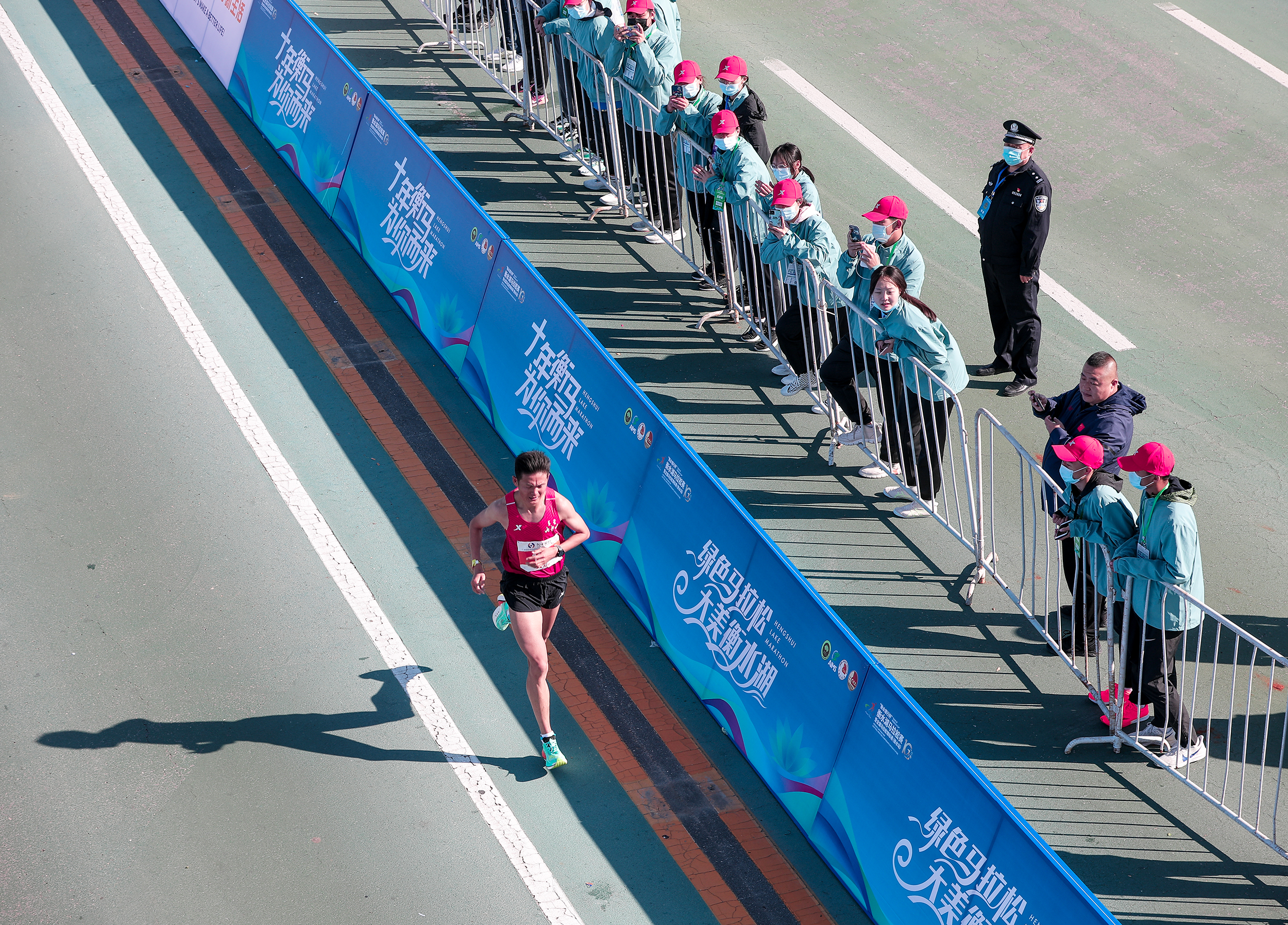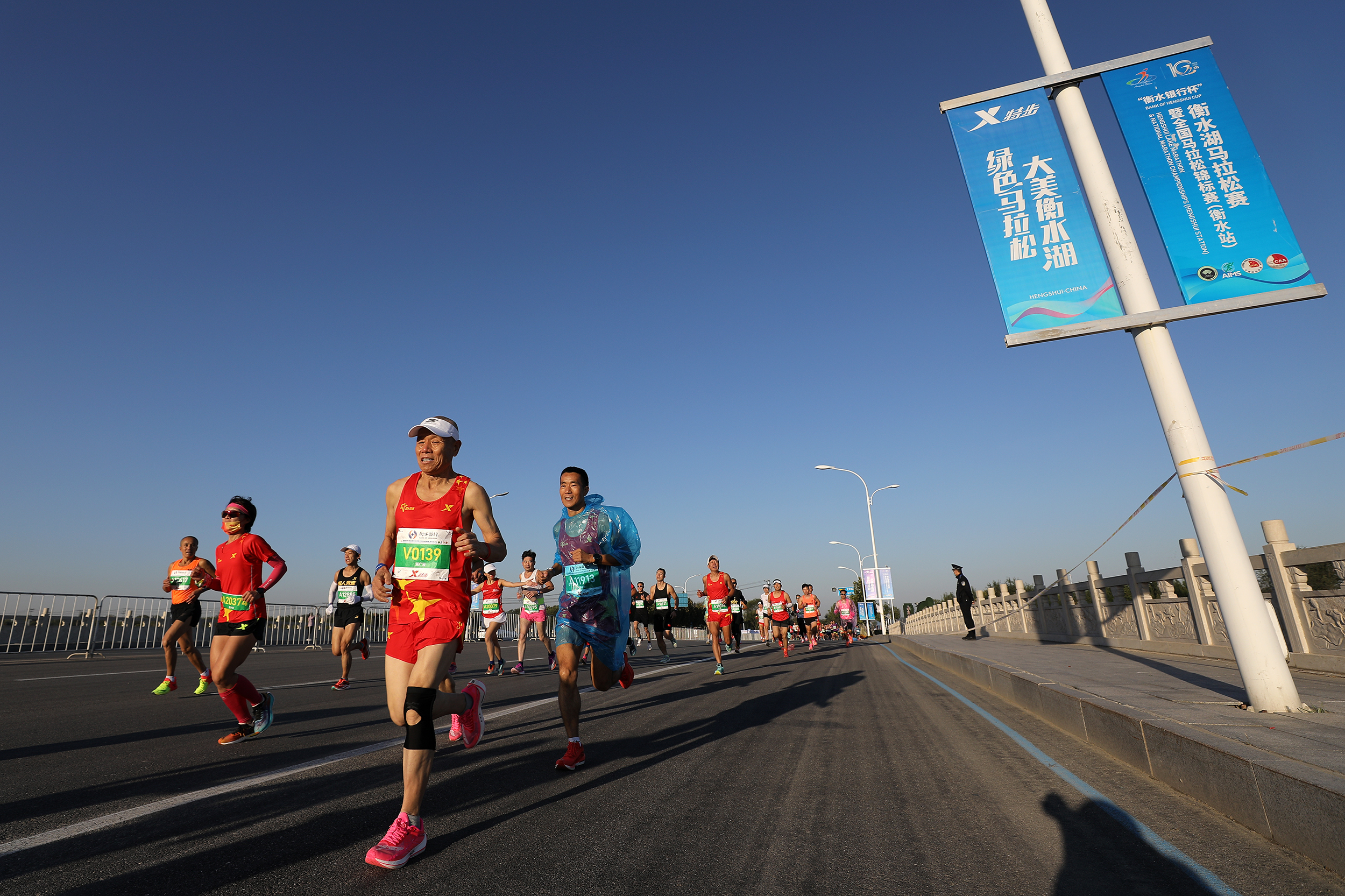 2021衡水湖馬拉松賽暨全國馬拉松錦標賽(衡水站)比賽現(xiàn)場。