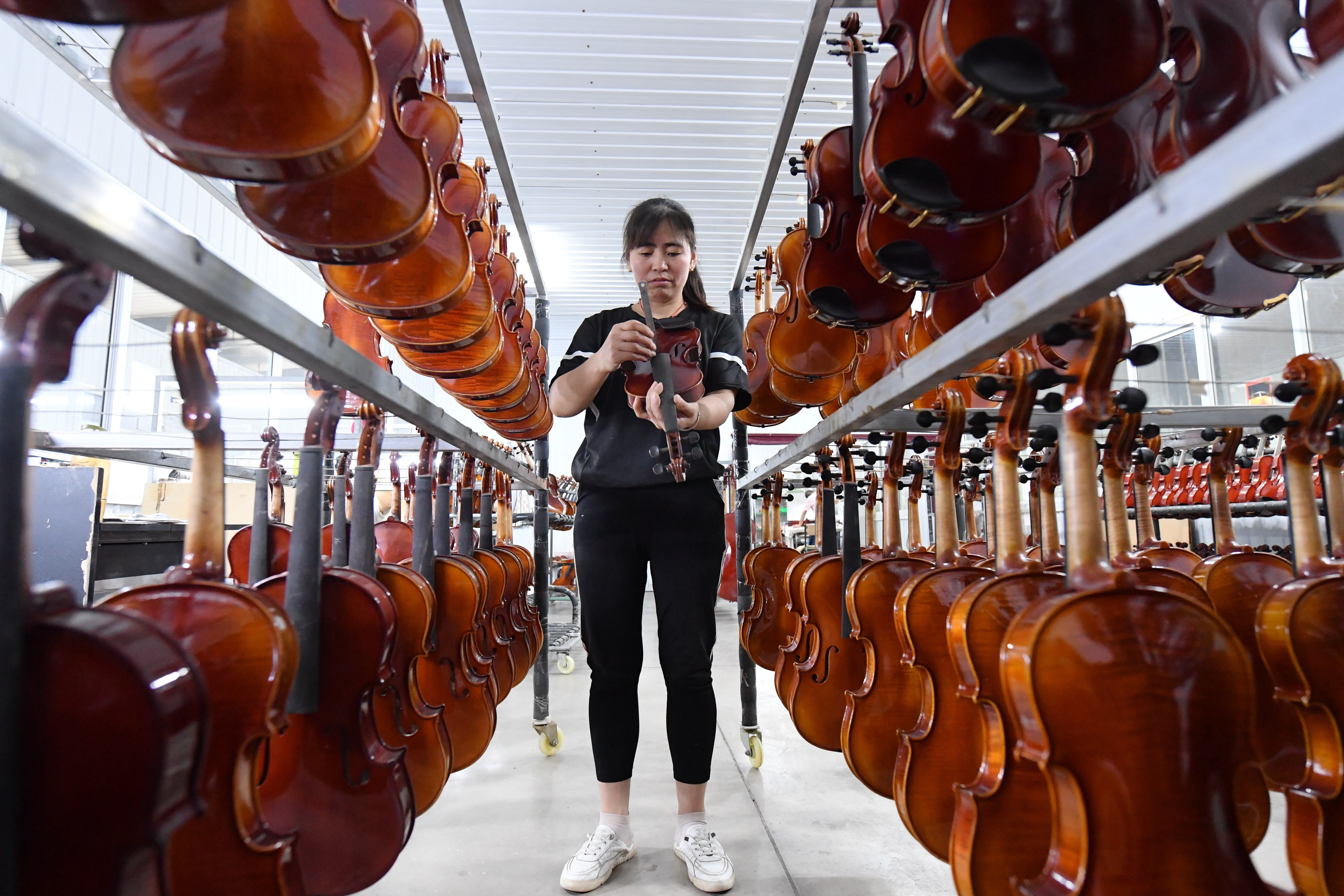 樂器企業(yè)工人檢驗小提琴質(zhì)量。蘇小立 攝