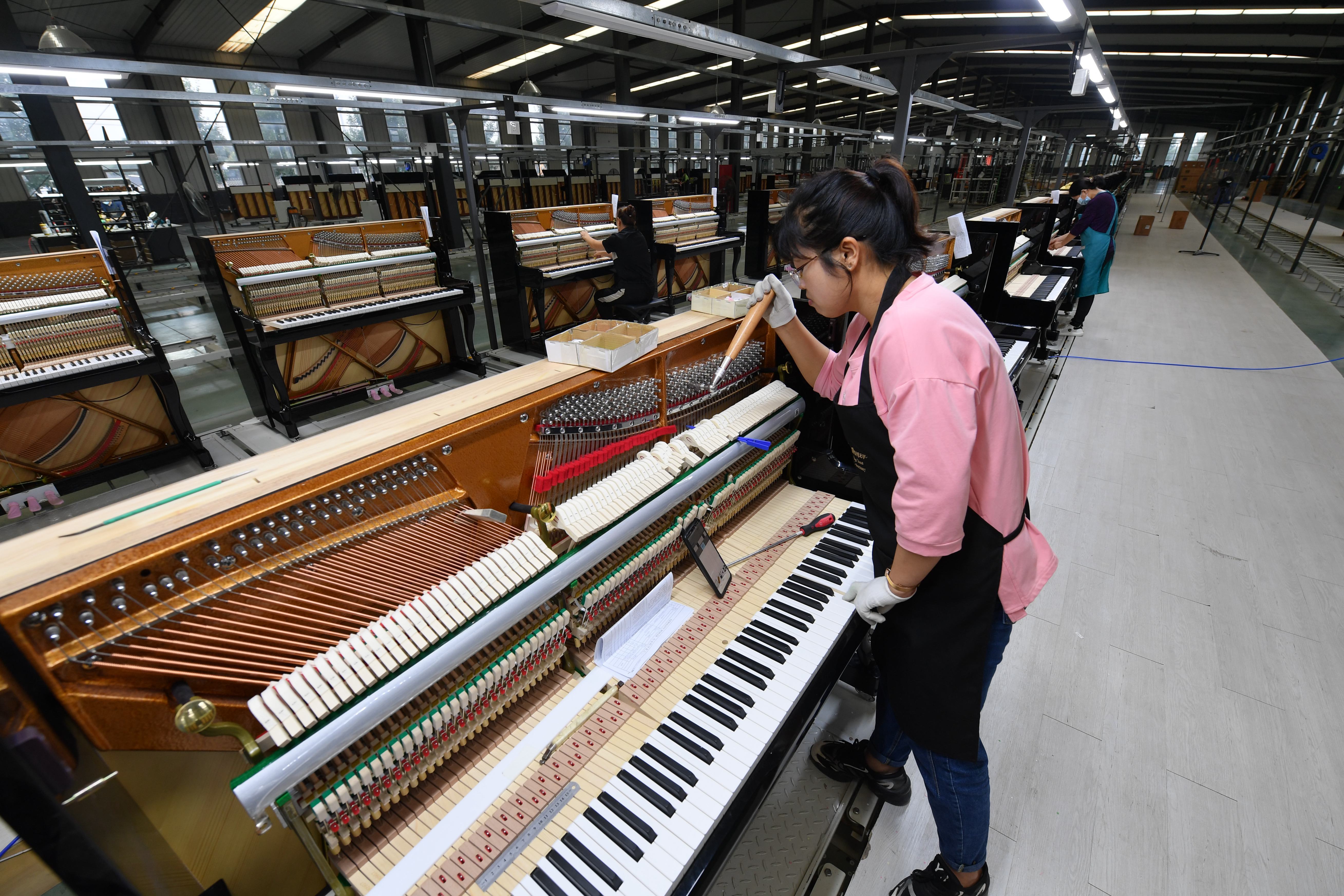 樂器企業(yè)工人給鋼琴調(diào)律。蘇小立 攝