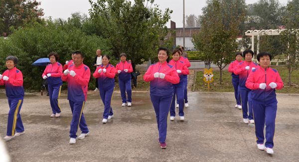 棗強(qiáng)縣中老年益助協(xié)會(huì)的舞蹈演員為老人們表演舞蹈。靳紅莊 攝