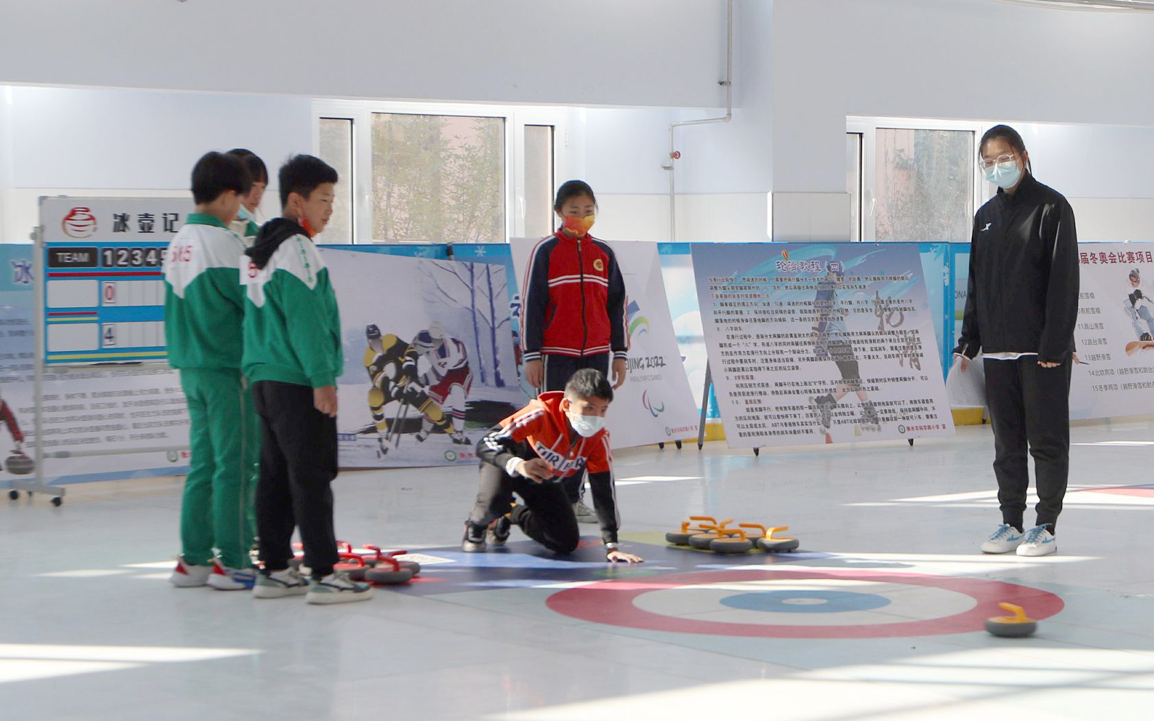 冰壺比賽雙方選手均投壺結束,等待裁判打分。