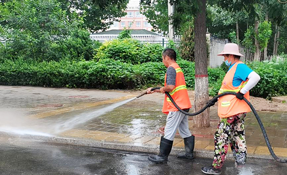 環(huán)衛(wèi)工人清洗街道(資料圖)。景縣融媒體中心供圖