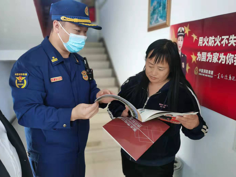 為群眾發放消防安全宣傳冊。馬媛媛 攝