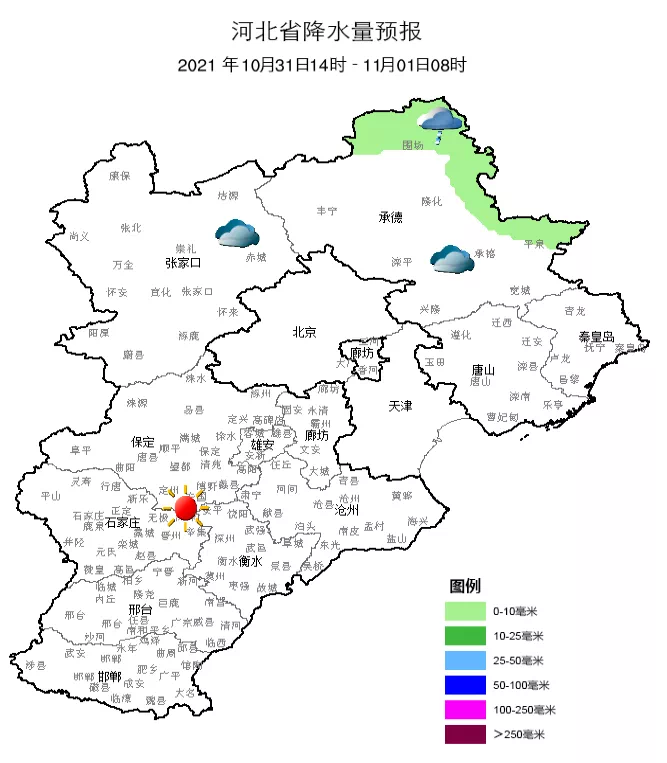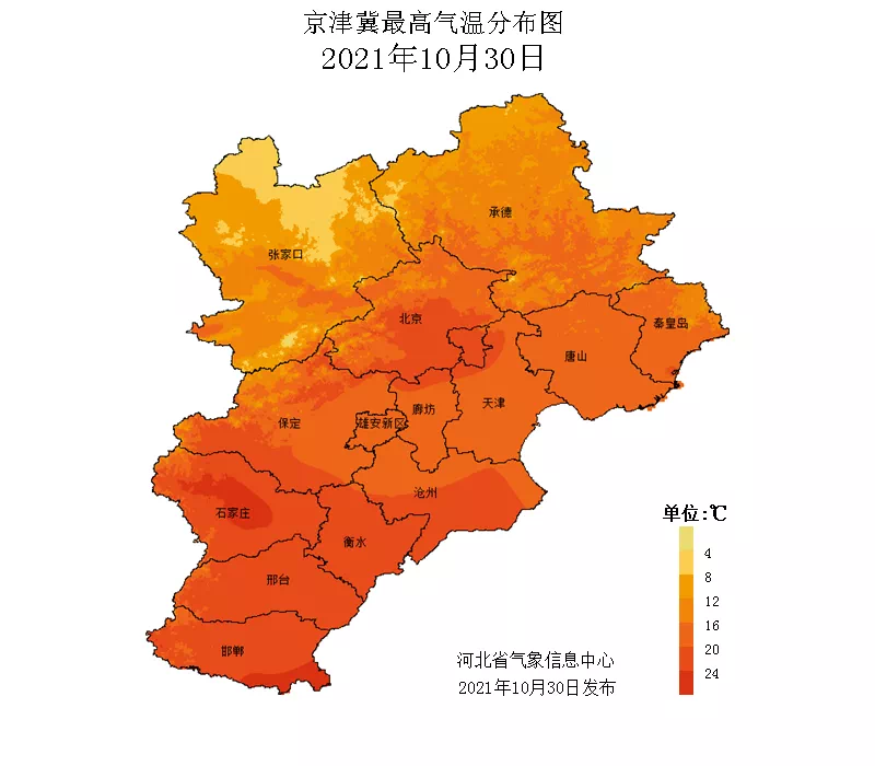 具體天氣預報為:10月31日夜間,晴間多云,偏東風2~3級,最低氣溫4℃到5℃;11月1日,白天晴間多云,旱晨前后有霧或輕霧,夜間多云轉陰,16℃到5℃;2日,陰轉多云,15℃到8℃;3日,晴間多云,21℃到7℃;4日,多云,22℃到8℃;5日,多云轉陰,20℃到9℃;6日,陰有小雨,局部中雨,偏北風4~5級,16℃到6℃;7日,多云轉晴,10℃到0℃。