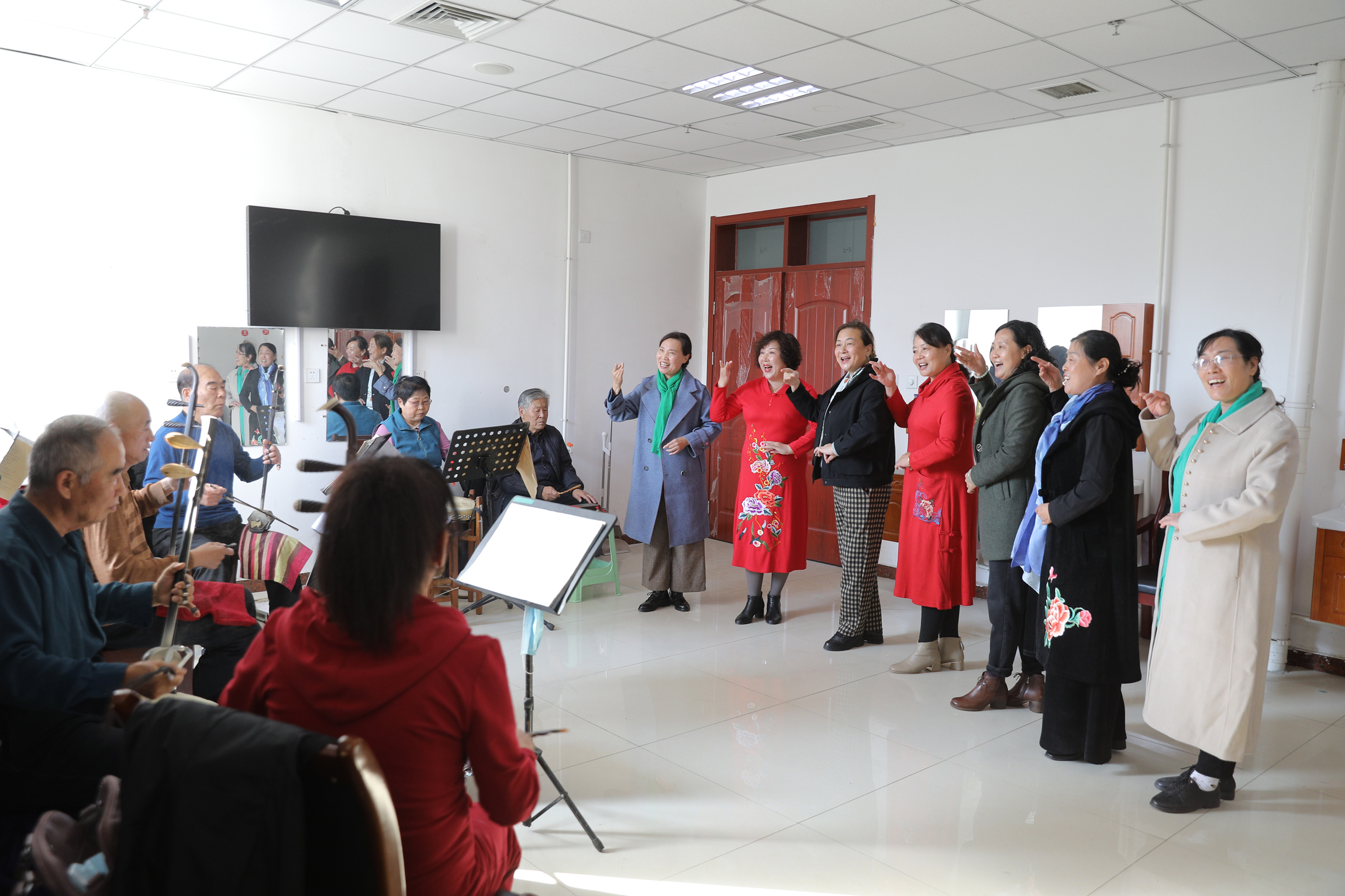 阜城康樂評劇社成員在群眾藝術中心戲曲排練室練功。
