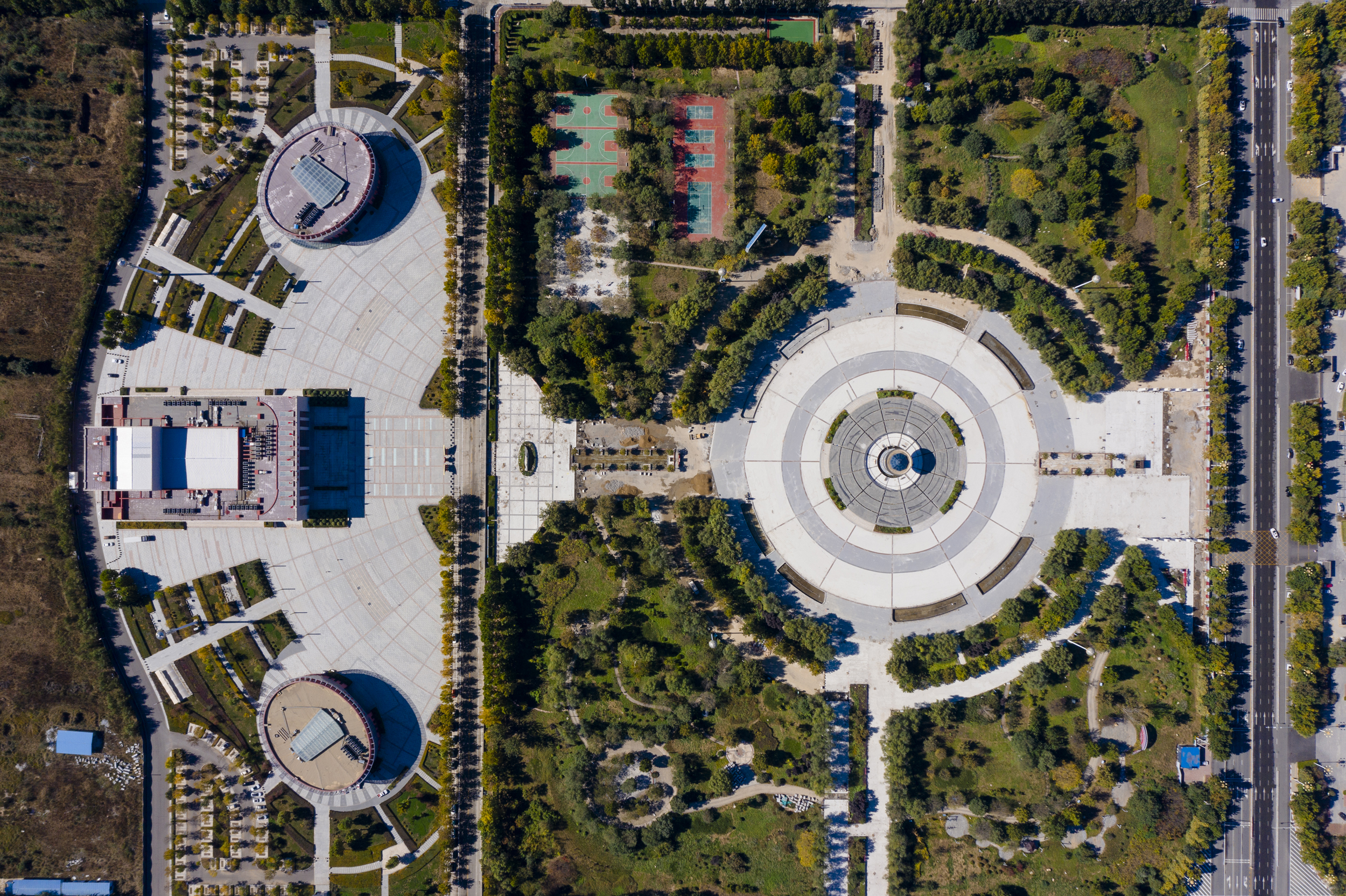 阜城縣“五館一中心”與對面阜豐公園俯瞰。