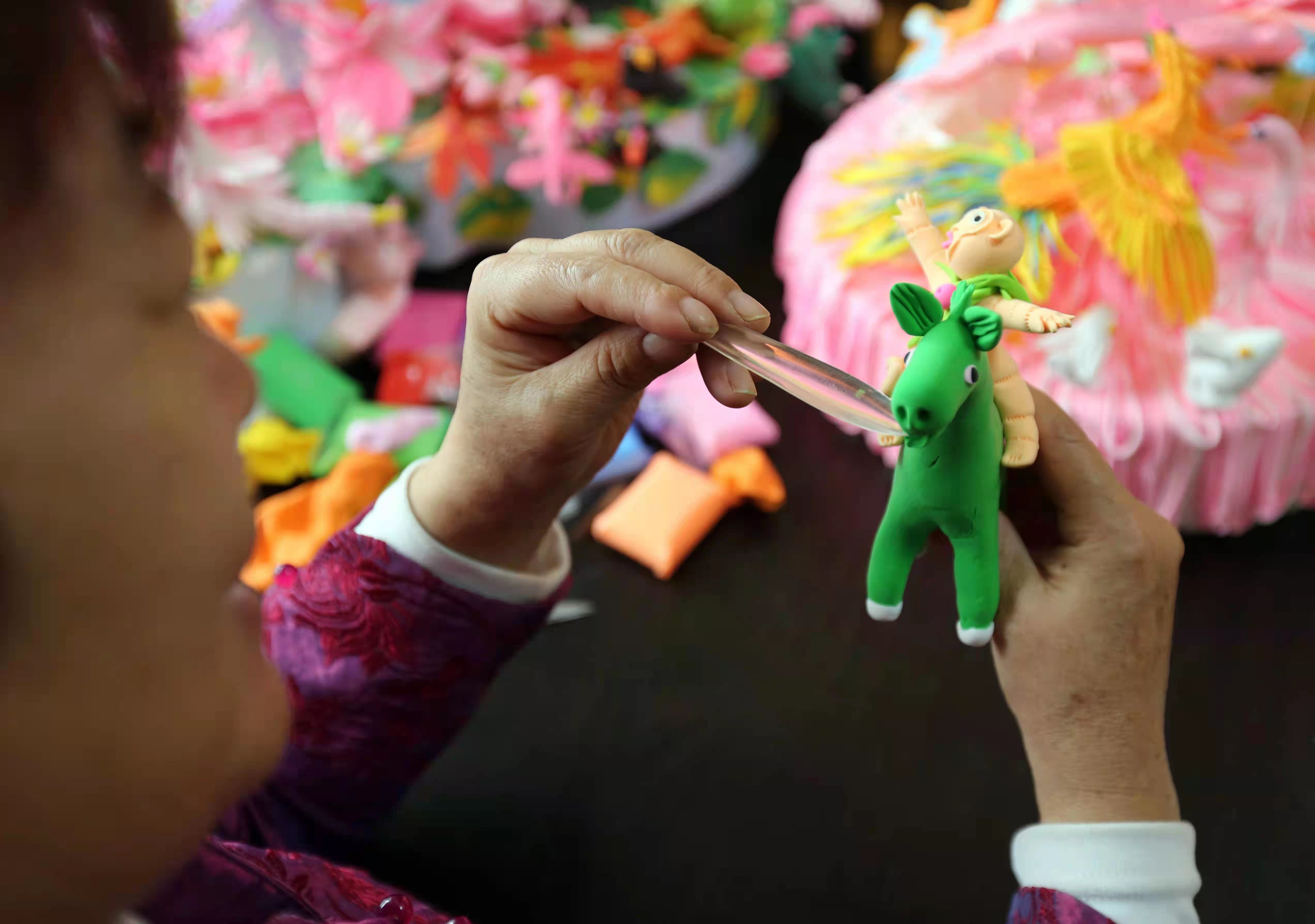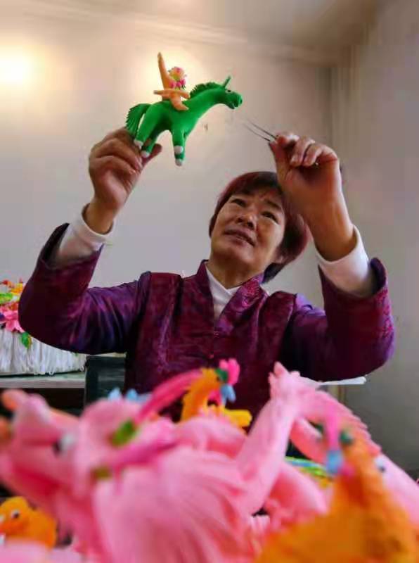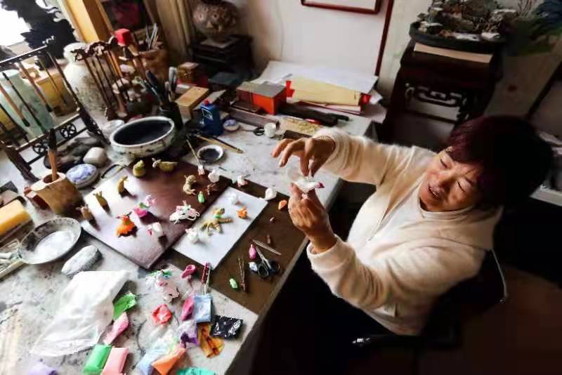 風(fēng)風(fēng)雨雨40年,張夢君經(jīng)歷了人生的生死離別,經(jīng)歷了生活中的情感波瀾,但從未停止過對藝術(shù)和夢想的追求。她鍥而不舍地創(chuàng)作,藝術(shù)的勞作成為她重要的生活內(nèi)容,也成為她慰藉心靈的支撐。她在生活中尋找靈感,把自己的感情融入到創(chuàng)作中,用作品謳歌時(shí)代、贊美生活,頌揚(yáng)真善美,傳遞正能量,使作品也有了思想和靈魂。她說,自己對作品傾注了太多的感情,常常夢見她捏的小動物們張口說話,和她一起聊天。她希望面塑這門指尖上的老手藝,能夠代代相傳,并不斷發(fā)揚(yáng)光大。