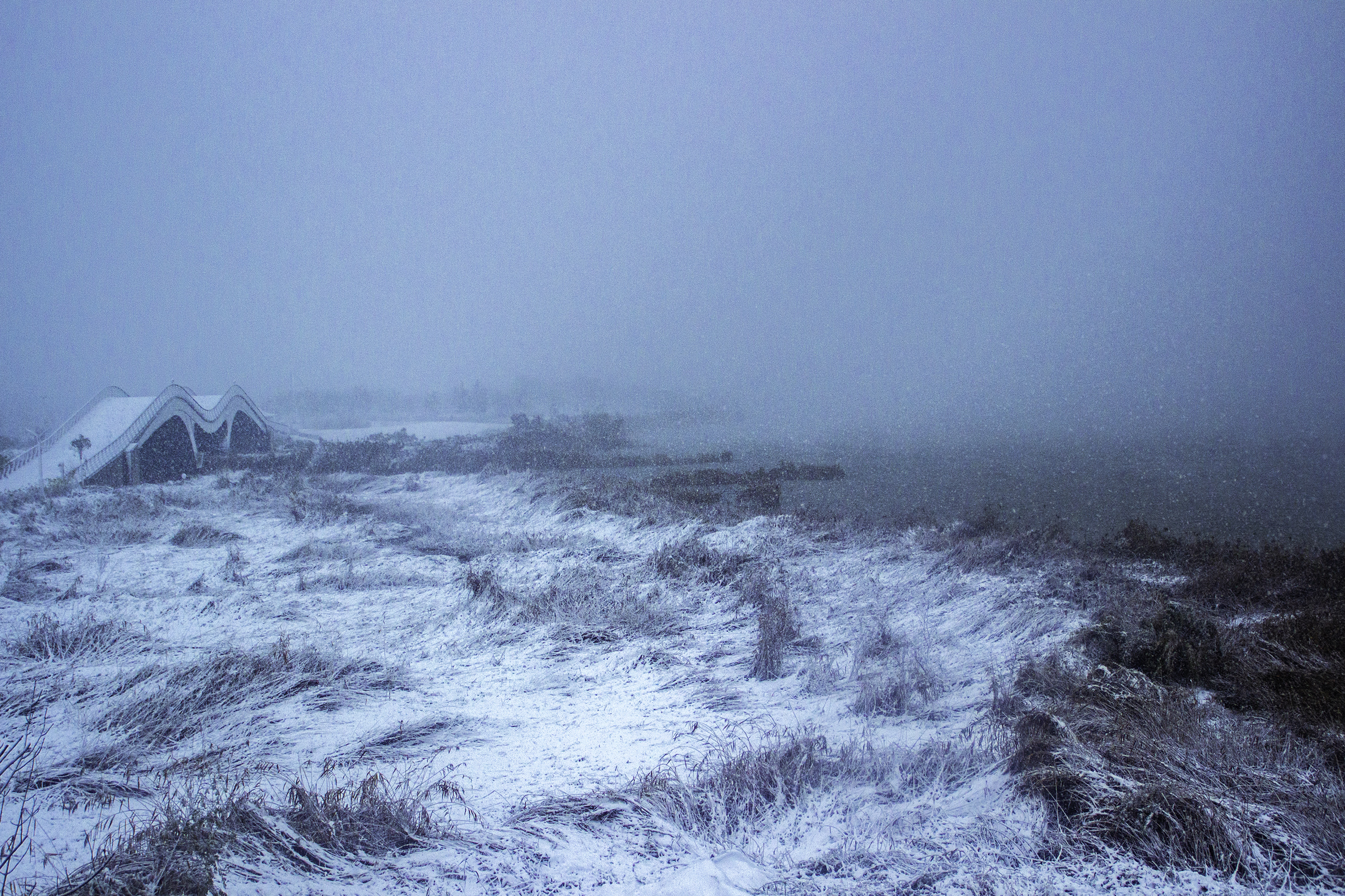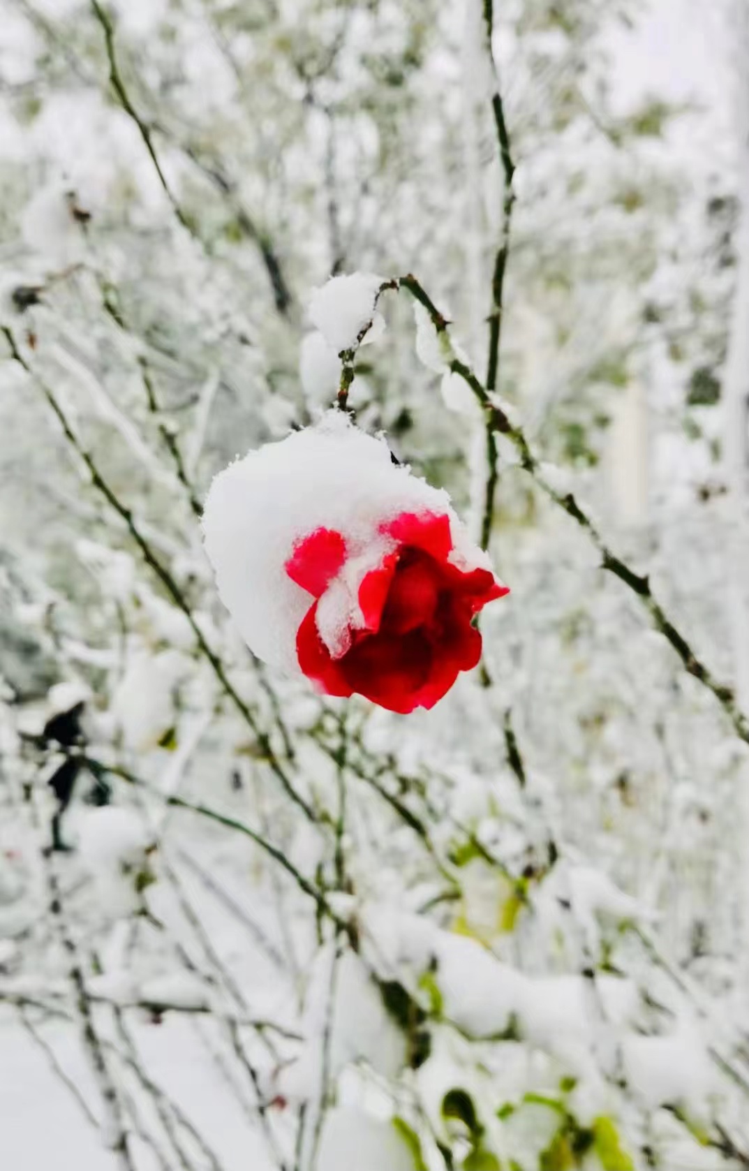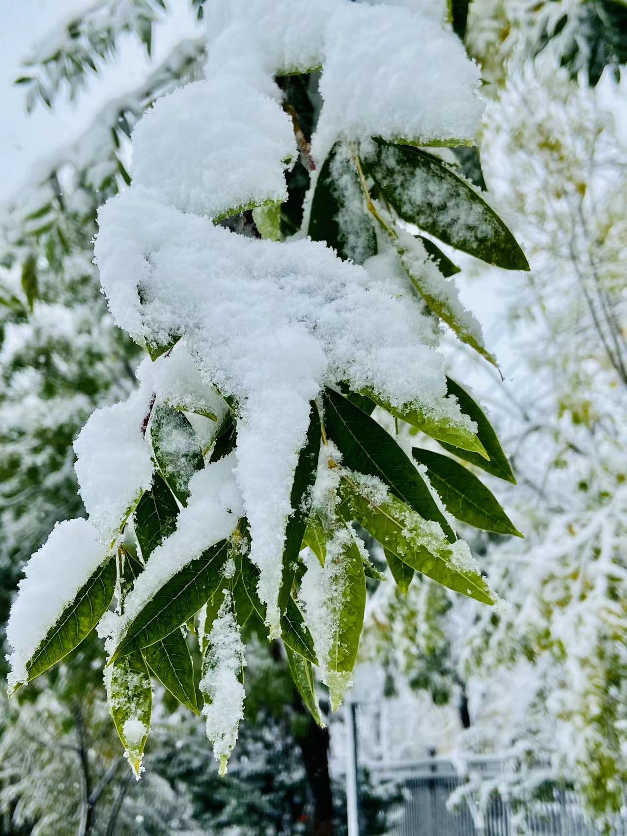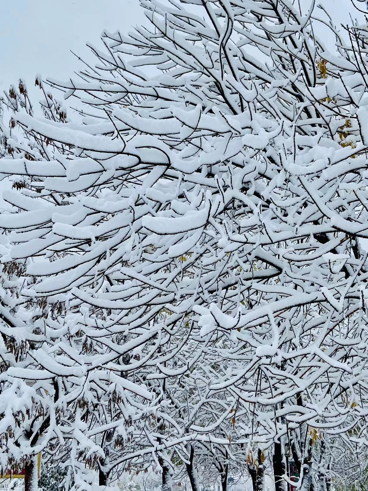 樓下的草還綠著,花還紅著,枝頭還掛著來不及變黃的樹葉,一場雪的到來,全都變成了統一的顏色。調皮的雪,將街頭的長椅坐滿,給汽車蓋上白色的“車衣”,將衡水湖畔的蘆葦壓彎。