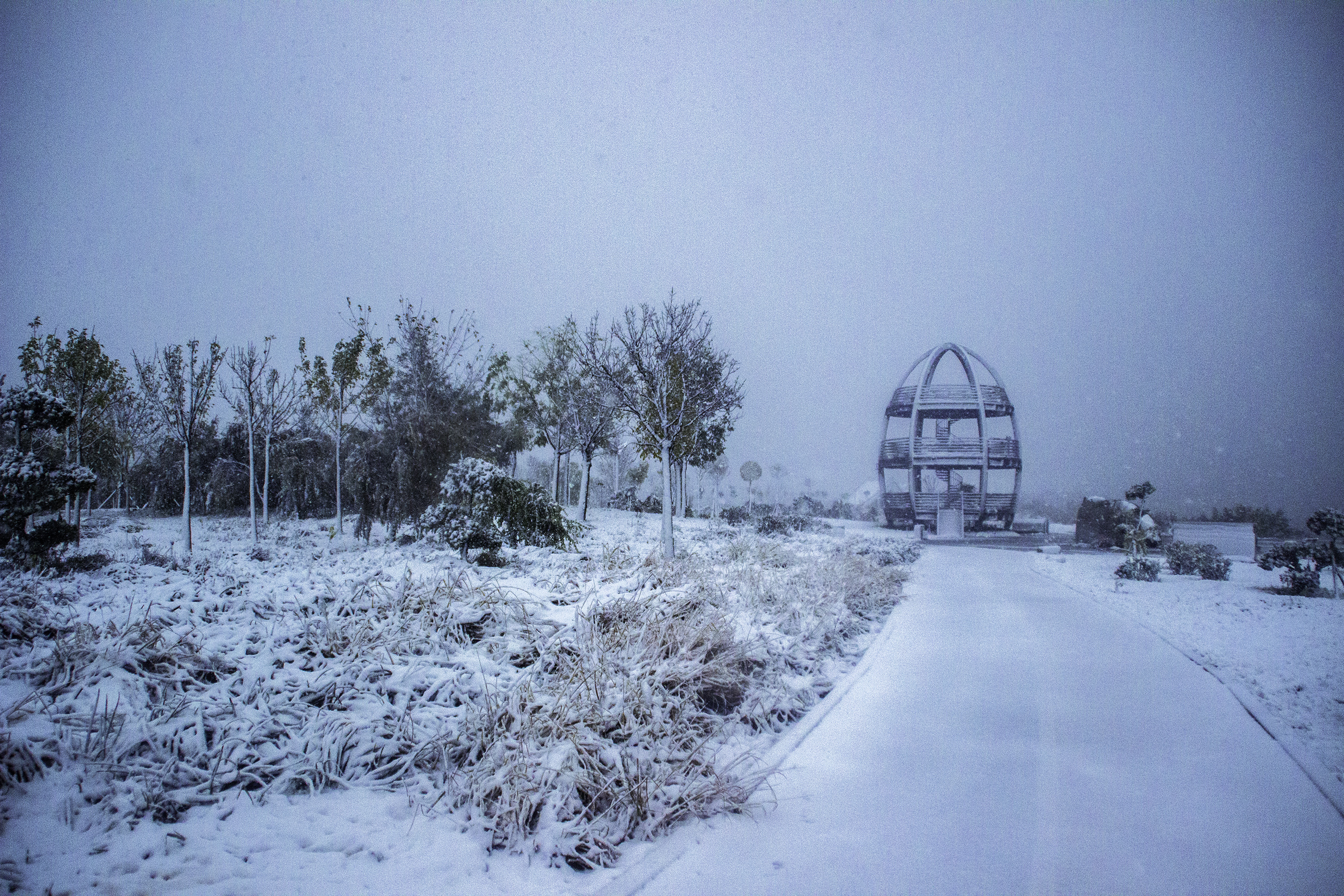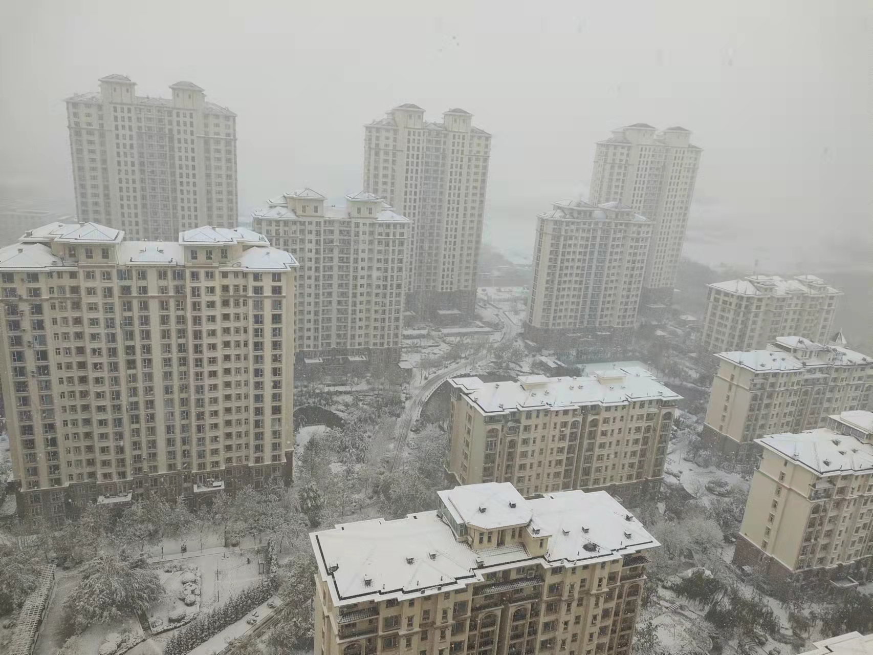 11月6日,市氣象臺大風藍色預警、暴雪藍色預警、寒潮黃色預警三預警信號齊發,為這場雪的到來營造了隆重的儀式感。在大家對今冬第一場雪的萬分期待中,6日晚上8時許,大雨裹挾著狂風先一步而來。到了7日凌晨3時許,雨滴變雪花。等到了清晨,大家一覺醒來,迫不及待地打開窗簾,窗外早就變成銀裝素裹的世界。