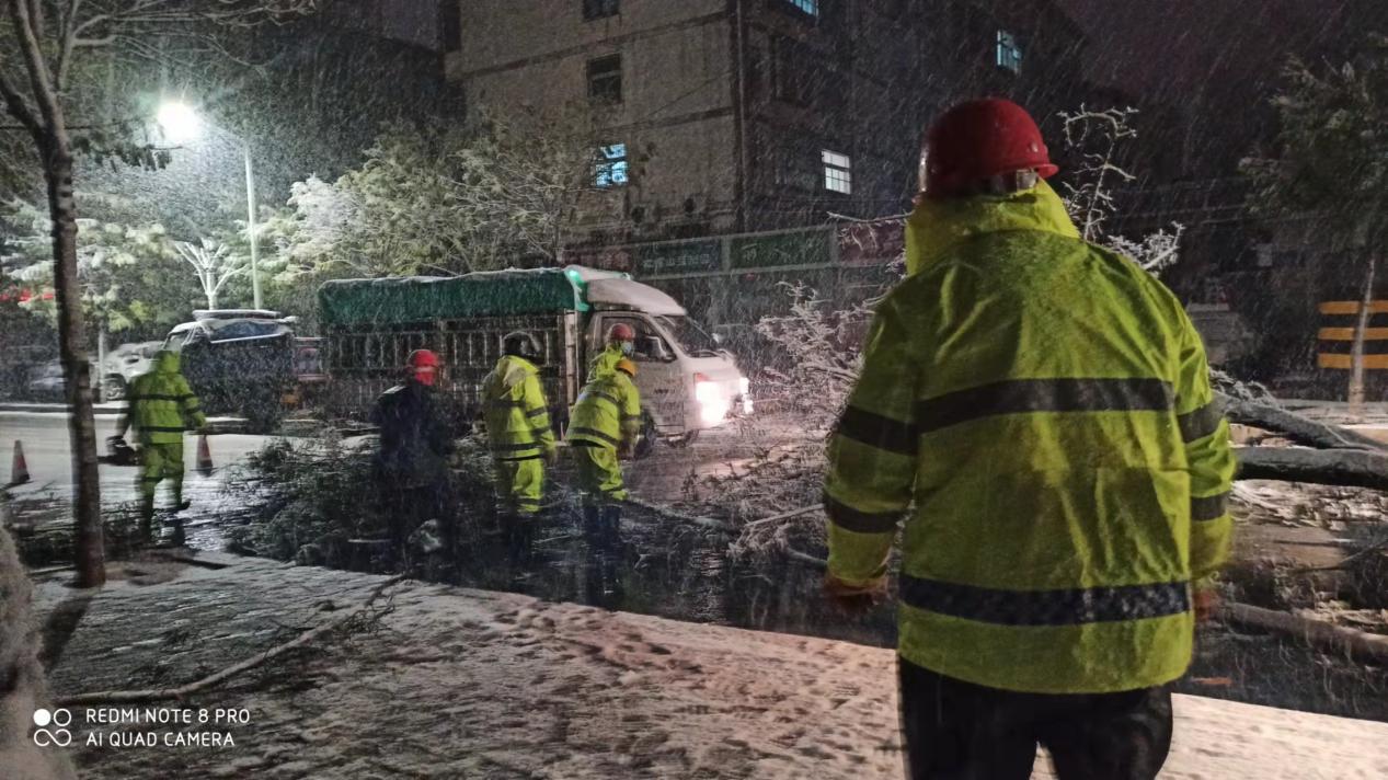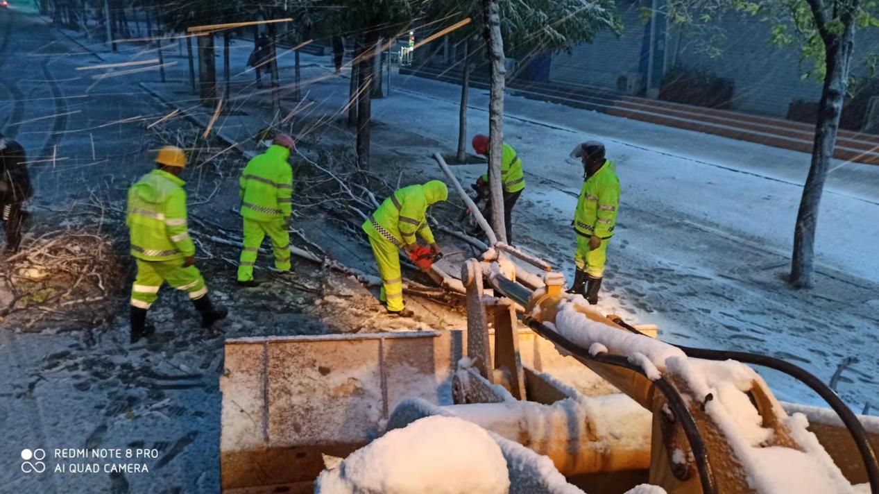 集中力量、突出重點,確保道路暢通無阻。積極組織各方力量,全面展開除雪作業(yè),出動除雪機械5臺、貨車5輛、鏟車1輛,應急人員30余人,街道保潔員全員上崗,上街清理便道和自行車道積雪,并結合雪情對城區(qū)街道坡道、橋頭、交叉路口等重點路段及周邊重點清理,預灑融雪劑,確保群眾出行安全。截至目前,清理倒樹11棵,扶正、固定歪樹26處,清理斷枝106處。