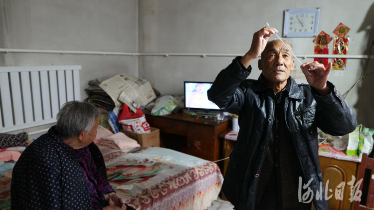 11月3日,安新縣安新鎮南劉莊村村民董長虹查看室內溫度計,已達到20℃。 河北日報記者李佳澤攝