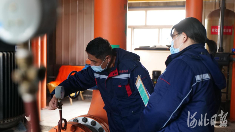 11月3日,在安新縣凱勝佳苑小區燃氣鍋爐房,安新縣寰慧凱盛熱力公司技術人員對鍋爐燃氣表、循環泵壓力表等關鍵環節進行檢查。 河北日報記者李佳澤攝