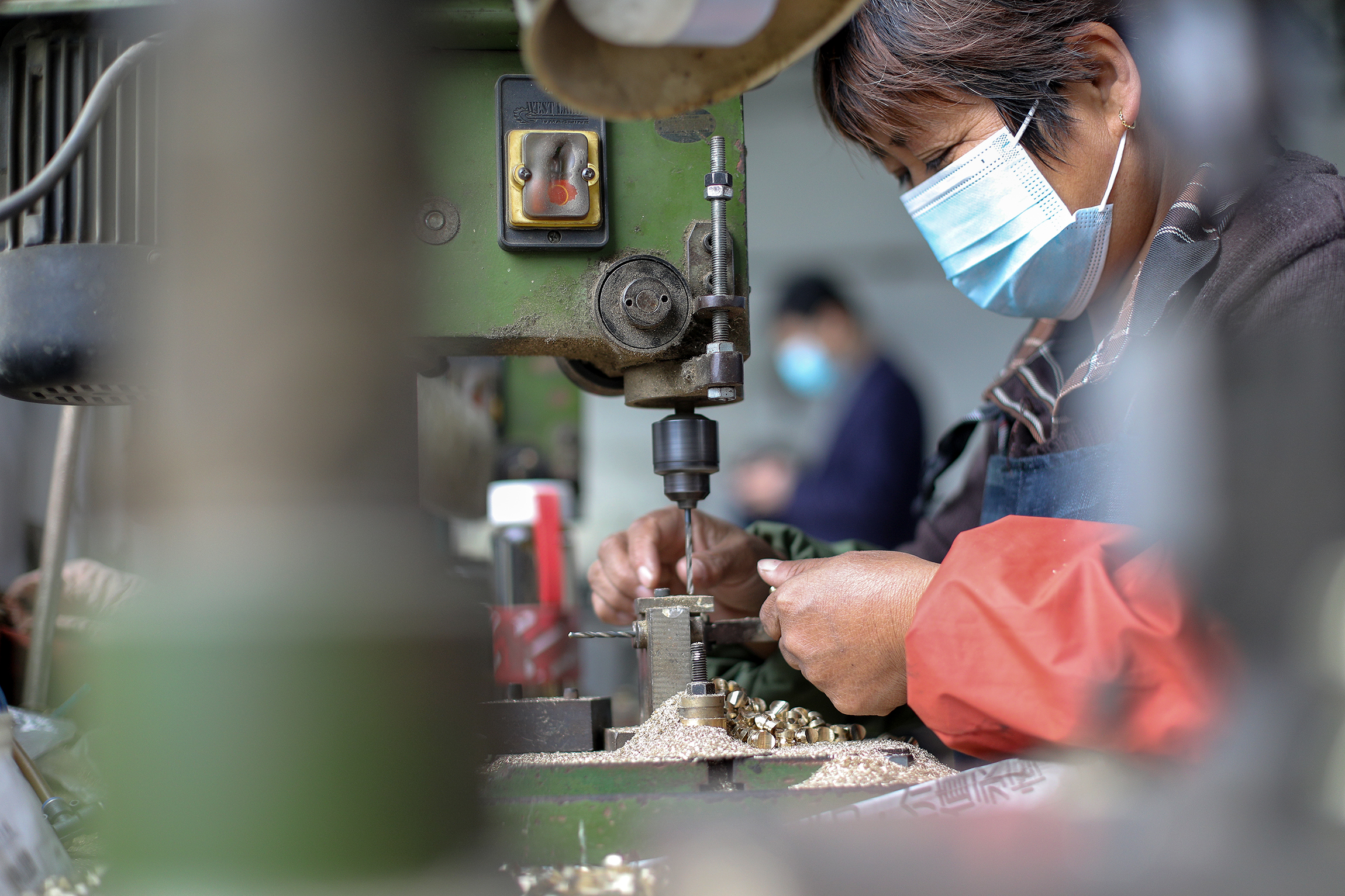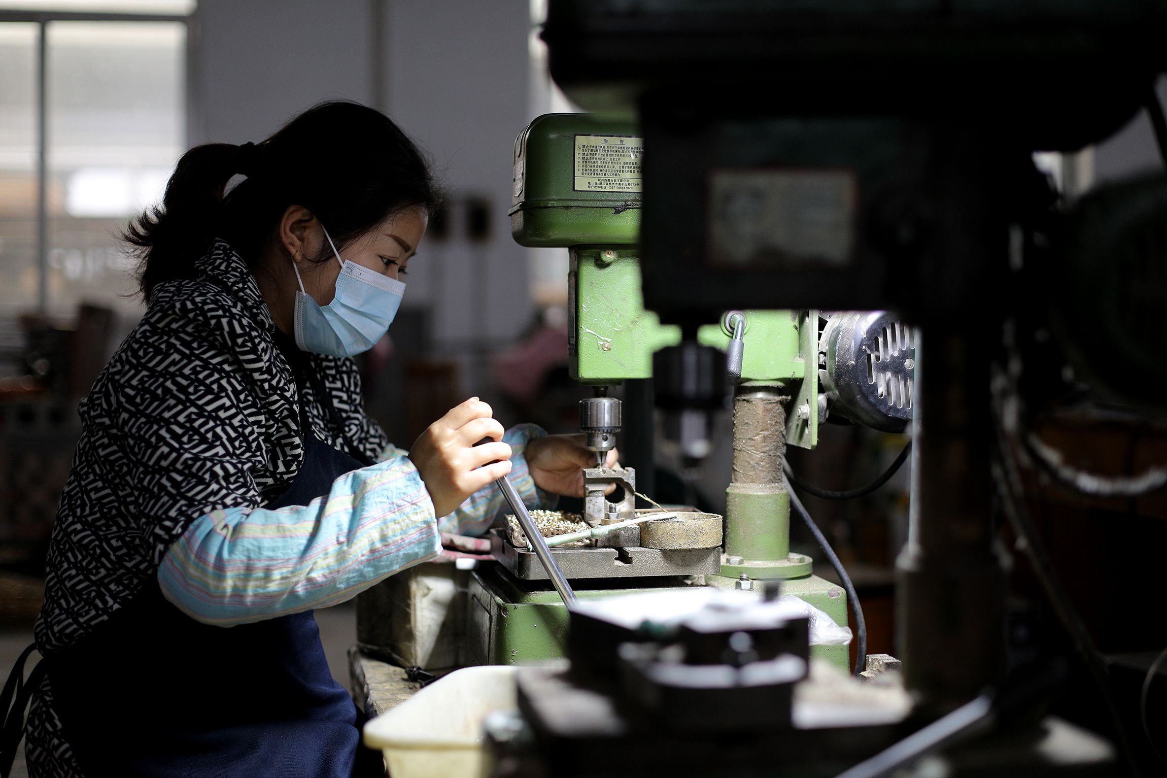在周窩鎮(zhèn)譚豐莊村東北角,村里的樂(lè)器配件生產(chǎn)加工扶貧就業(yè)車(chē)間里,十幾名工人正在忙碌著。村干部介紹,這個(gè)車(chē)間是全縣脫貧攻堅(jiān)期間,以縣博燁樂(lè)器配件公司為平臺(tái),以鎮(zhèn)里當(dāng)時(shí)建檔立卡貧困戶為主體,采取多戶聯(lián)合購(gòu)買(mǎi)設(shè)備合作經(jīng)營(yíng)的方式,讓村民通過(guò)入股分紅、就業(yè)實(shí)現(xiàn)穩(wěn)定增收。這個(gè)扶貧車(chē)間不僅讓16個(gè)農(nóng)民家庭有了持續(xù)穩(wěn)定的收入,還讓直接從事生產(chǎn)加工的村民每月有2000元左右的勞動(dòng)收入。一位在這里打工的譚豐莊村民說(shuō),他上有老下有小,家里還有十幾畝地,家門(mén)口的就業(yè)機(jī)會(huì)讓他省去了后顧之憂。經(jīng)過(guò)幾年的努力,他已經(jīng)成了操作數(shù)控車(chē)床的技術(shù)工,還帶起了徒弟,家里的收入逐年提高,日子真正的好起來(lái)。