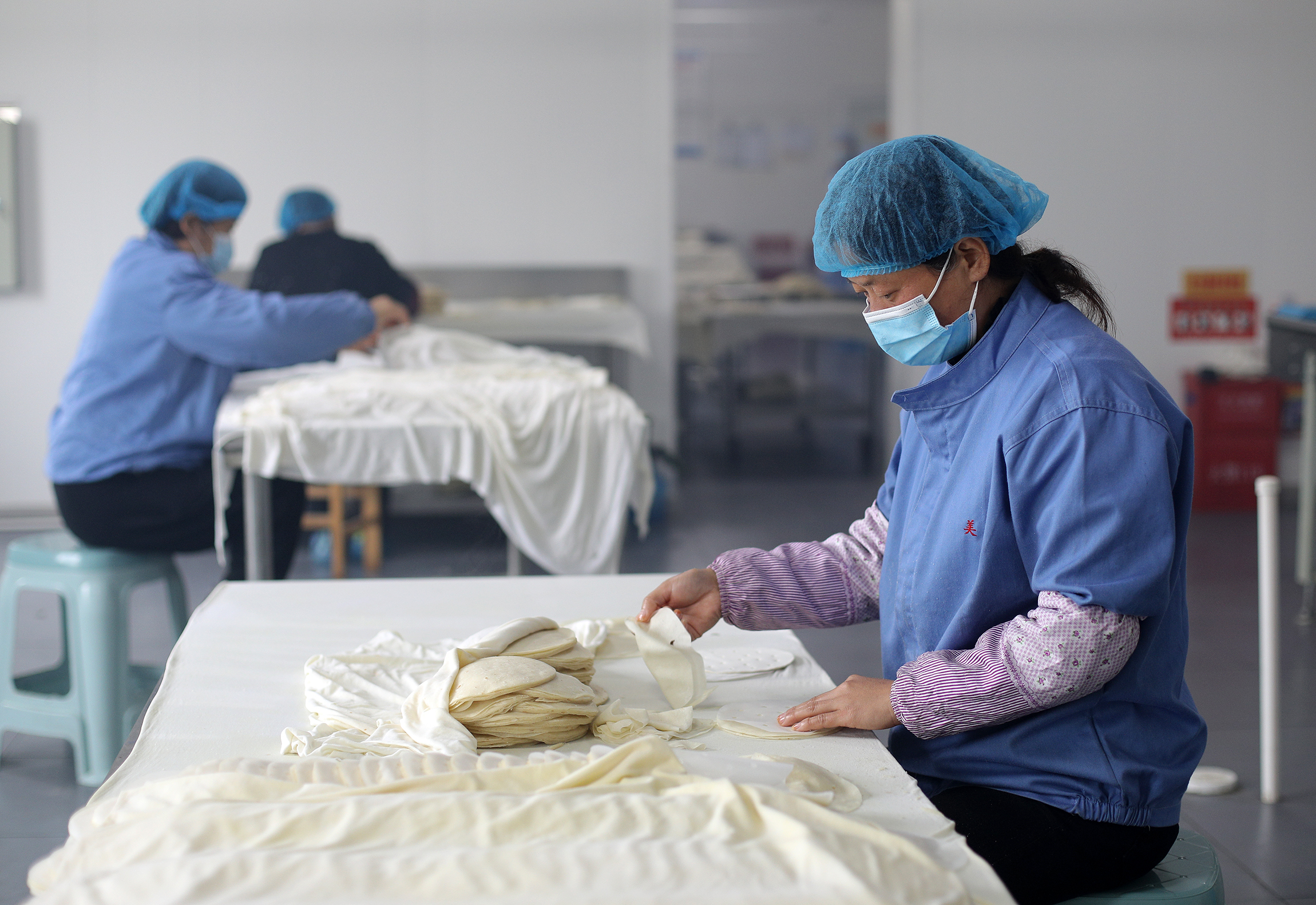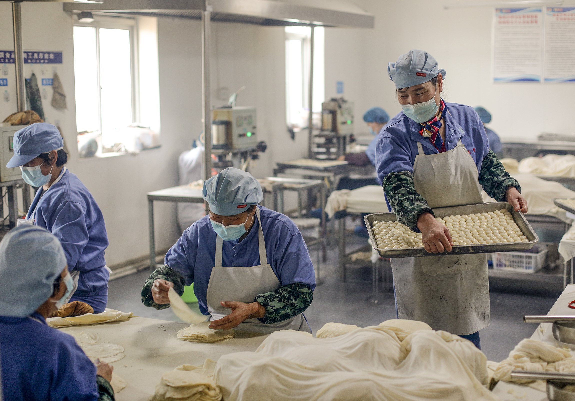 街關(guān)鎮(zhèn)前馬村美饌速凍米面車(chē)間里,附近村民化身車(chē)間工人在忙碌著。