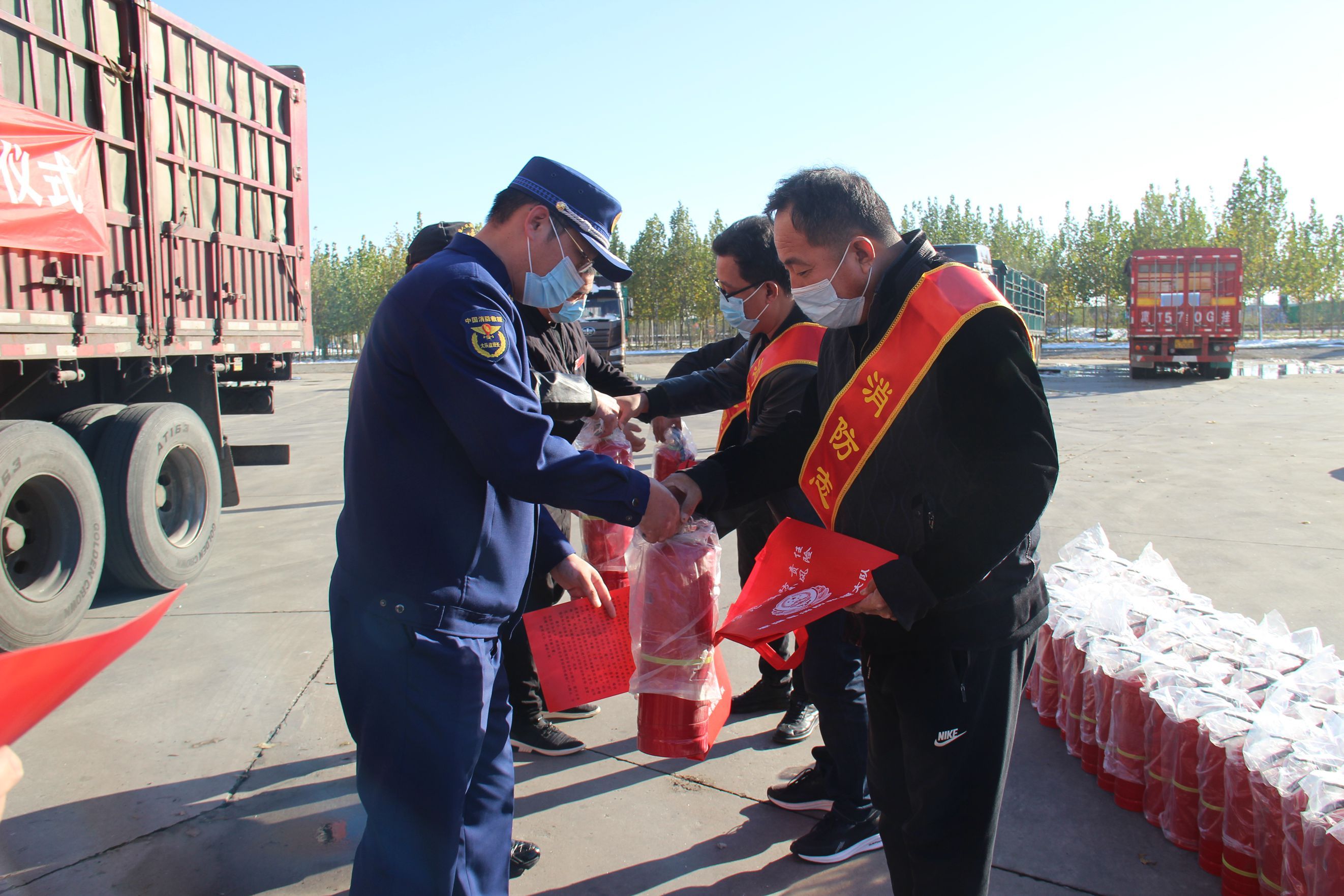 棗強縣消防救援大隊向消防志愿車隊隊員發放滅火器。張書寧 攝