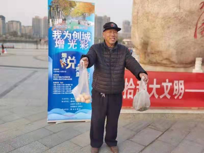 “知道你們組織這個活動后,我跟同伴就開始行動了。這不,兩天就撿了這么一大袋子煙頭。”今年76歲的陳大媽說,她和同伴早晨運(yùn)動或者飯后散步時,都會拿著袋子撿拾街邊或公園內(nèi)的煙頭,兩天就撿拾到了629克煙頭。接過工作人員遞過來的37枚雞蛋,陳大媽非常開心:“撿煙頭既能換雞蛋,又能以實(shí)際行動支持文明城市創(chuàng)建,多好的事兒啊!”年僅4歲的天天和爺爺也圍攏上來,詢問活動詳情。當(dāng)聽說撿拾煙頭能夠扮靚湖城時,天天拉著爺爺就走,邊走還邊說:“咱們也助力創(chuàng)城,撿煙頭去。”一老一小的舉動點(diǎn)燃了更多市民助力創(chuàng)城的熱情,大家紛紛表示,要加入到撿拾煙頭的隊伍里,為創(chuàng)城助力。