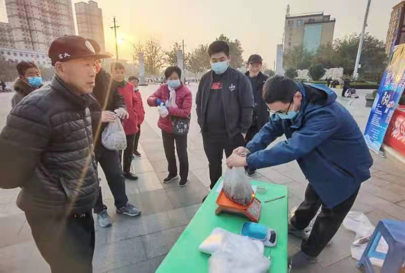 當(dāng)日下午3時許,在市區(qū)怡水園廣場,衡水日報社的工作人員剛剛將活動宣傳牌擺放好,就有市民拎著裝有煙頭的塑料袋準(zhǔn)備兌換雞蛋,工作人員迅速稱重、登記、兌換,忙得不亦樂乎。