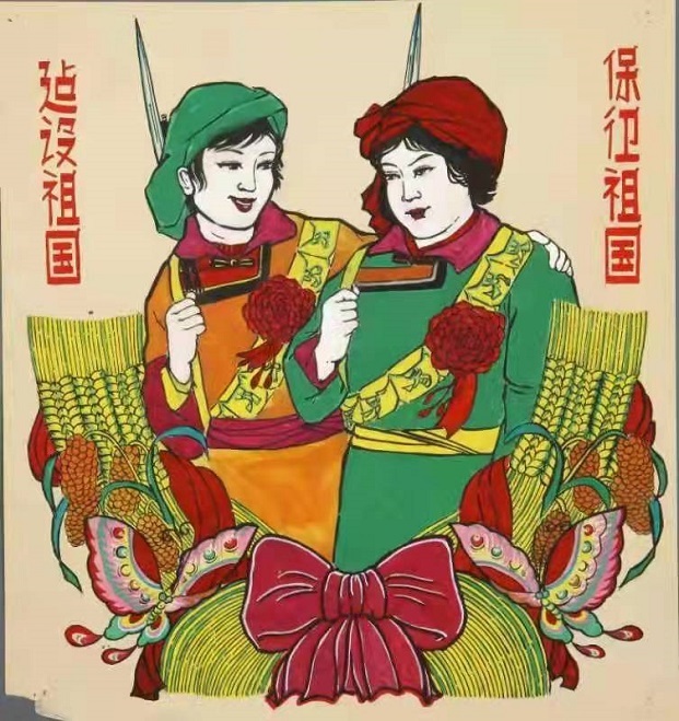 書中入選的武強(qiáng)年畫作品《建設(shè)祖國(guó) 保衛(wèi)祖國(guó)》。河北武強(qiáng)畫社供圖